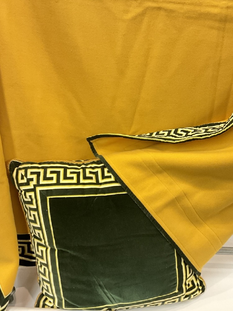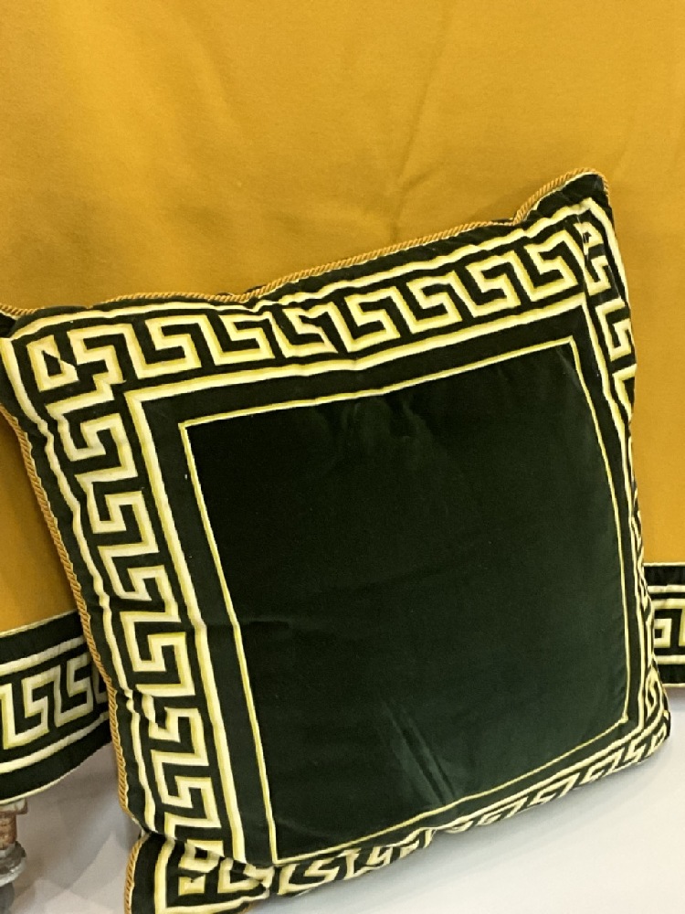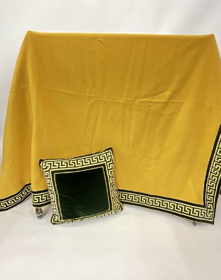 Versace Wool Blanket and Pillow with signature Greek Key motif. Fine high quality Merrino Wool.