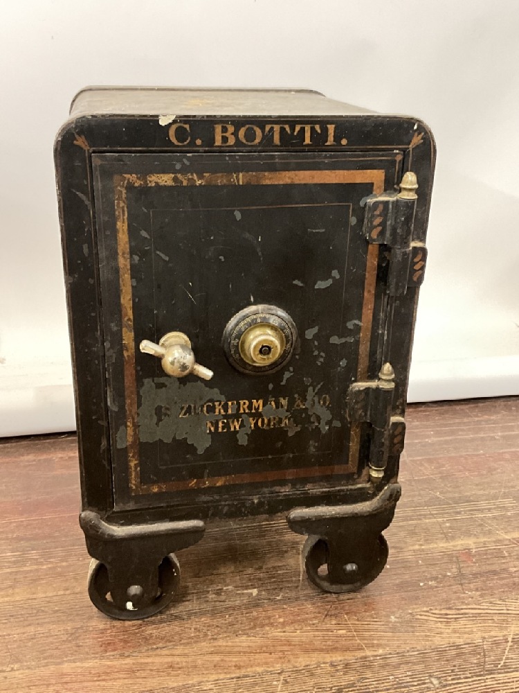 Antique C. Botticelli Cast iron safe. Made by Zukerman & Co. New York. Combination present.