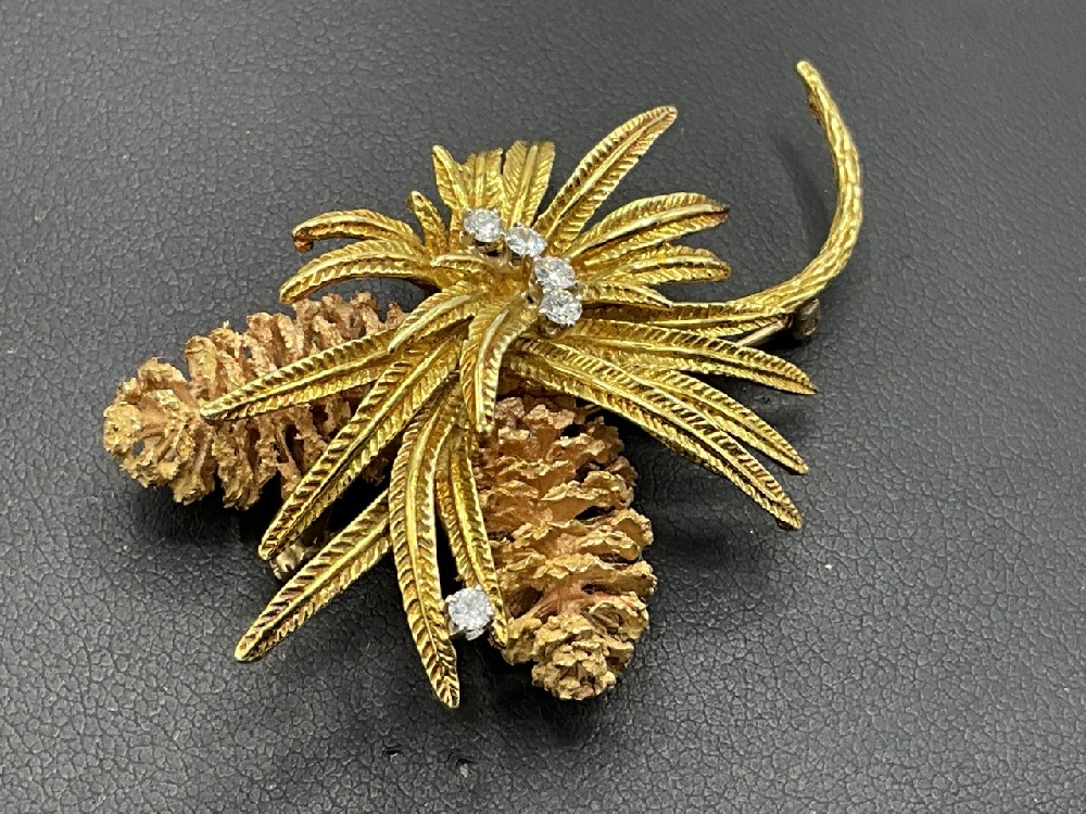 Five diamonds pine cone brooch