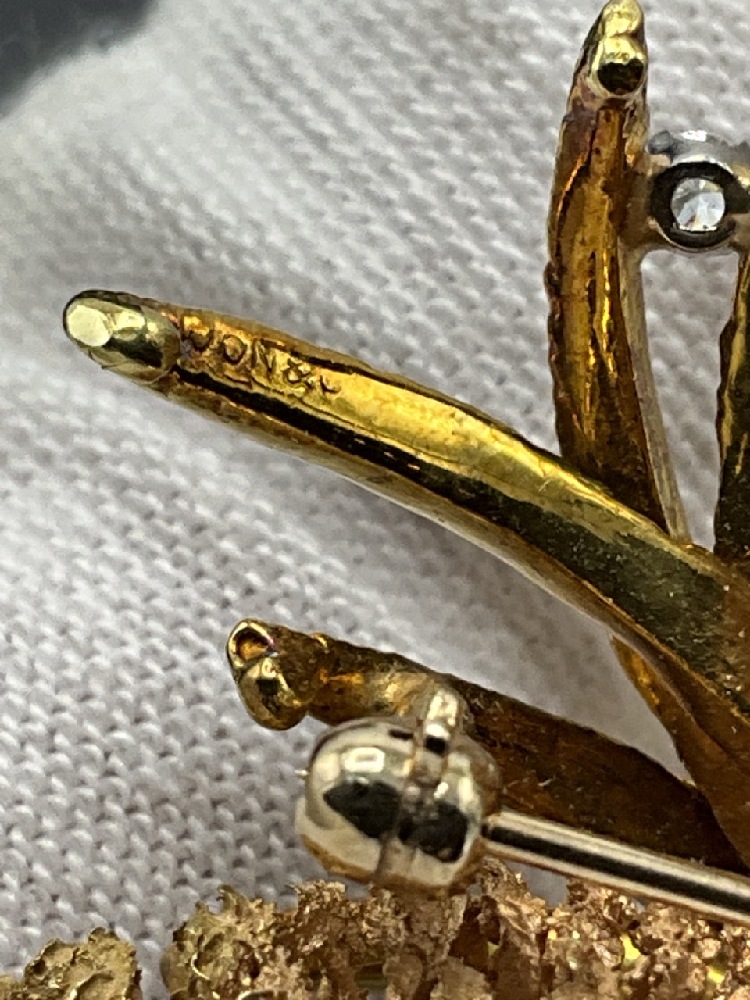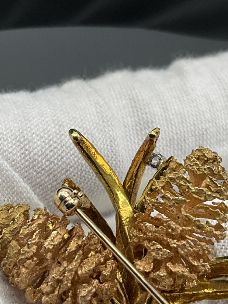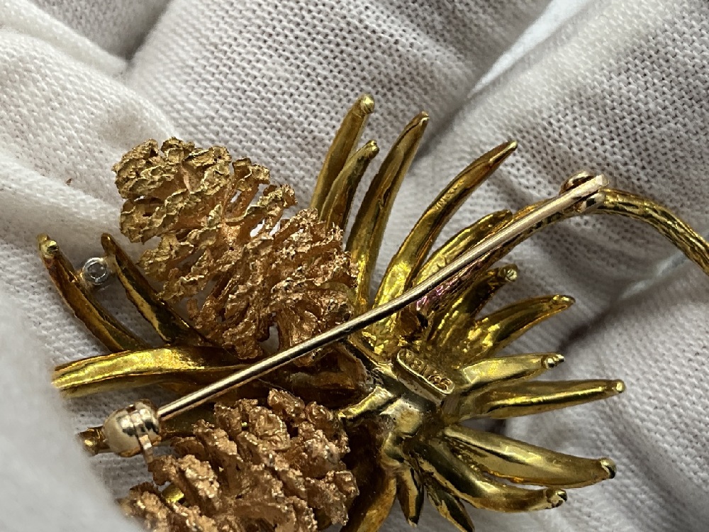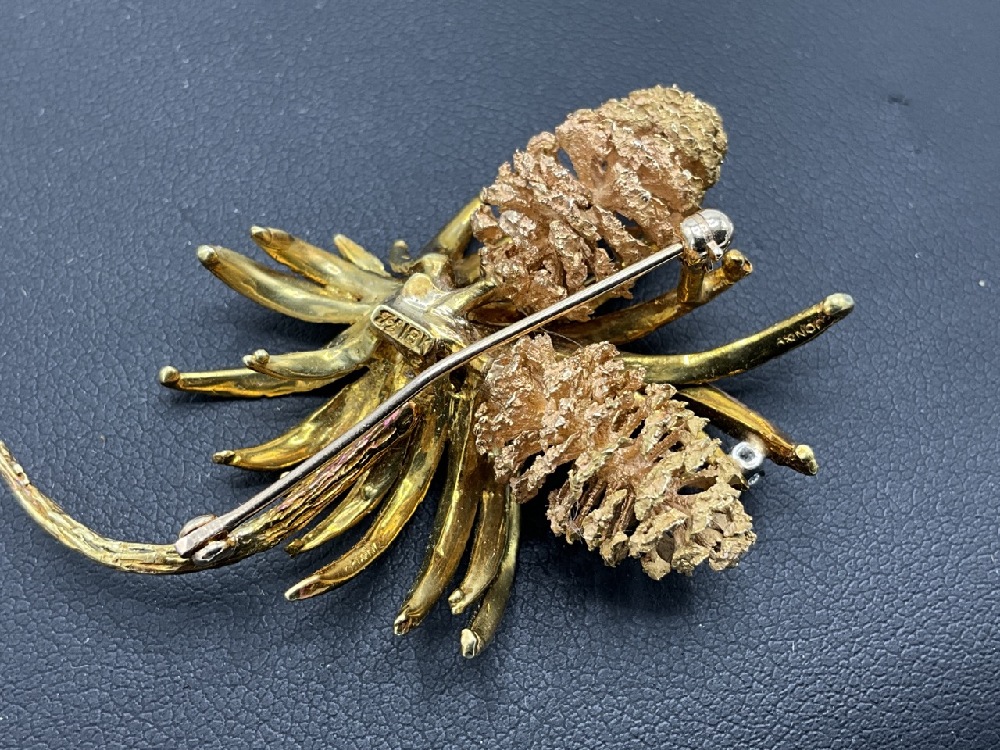 18K Gold Pine Broach Pendant. Signed Illegibly. Excellent quality and construction.