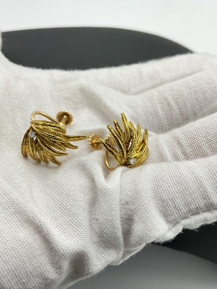 14K yellow gold Pine Cone Needle Earrings. Compliments lot 99.