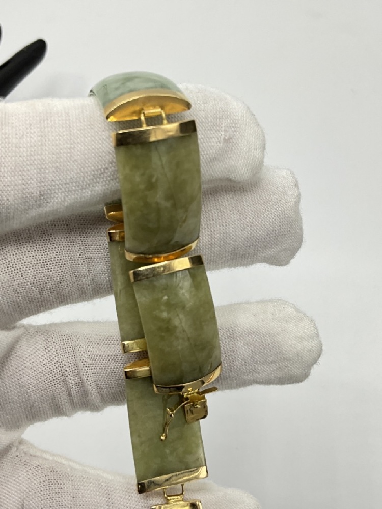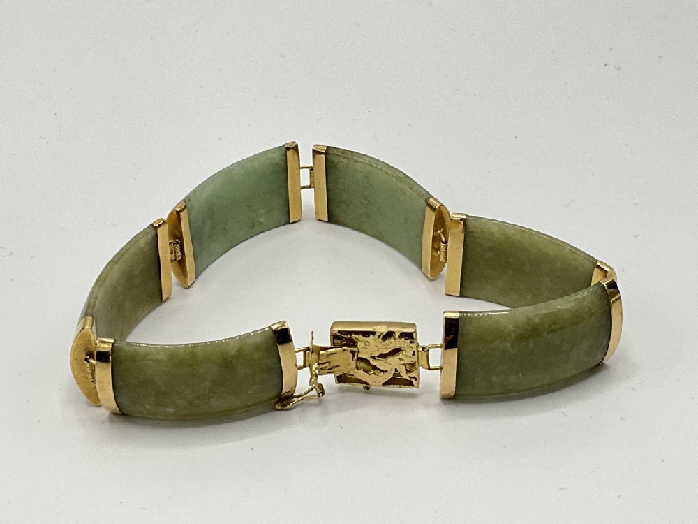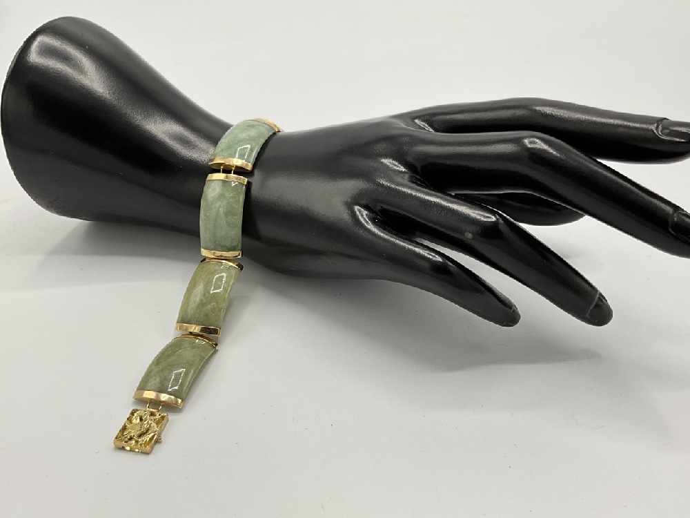 14k Gold Chinese Jade Bracelet. Made in Hong Kong.