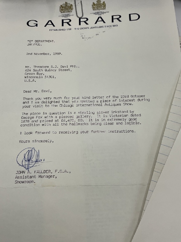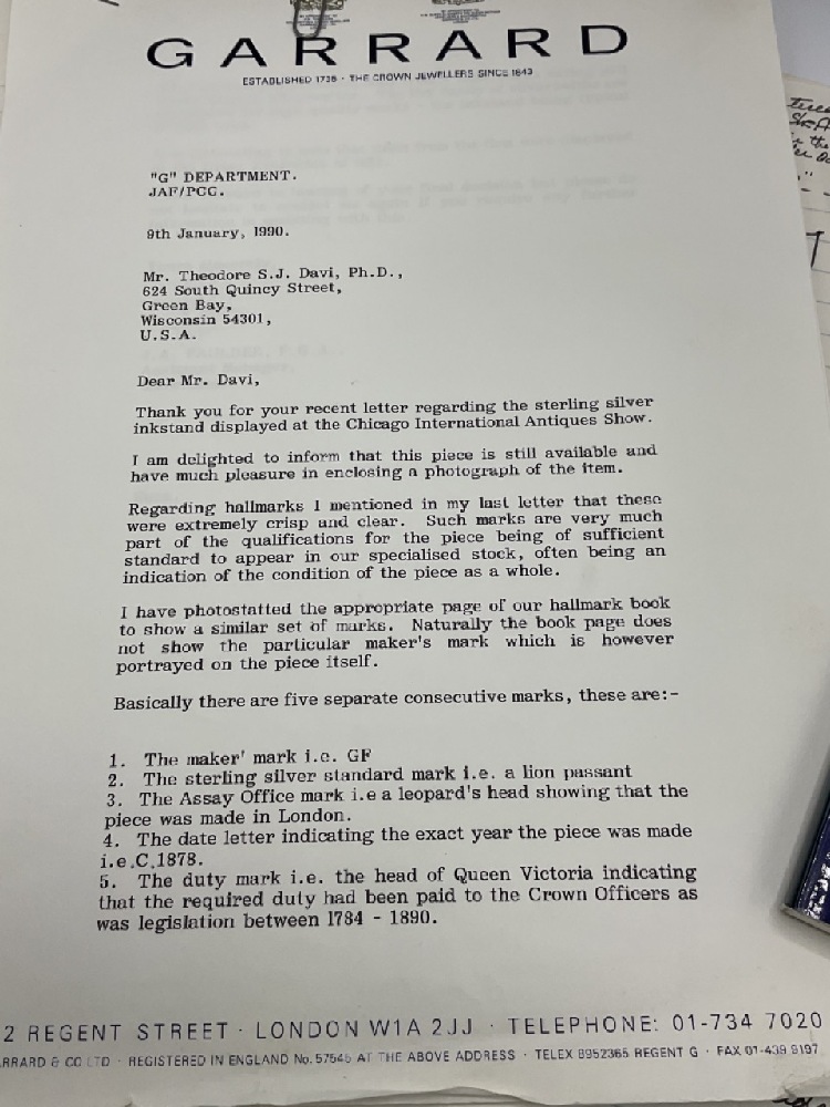 Thomas Bradbury Sterling Silver Inkwell. Exhibited in the Chicago International Expo.