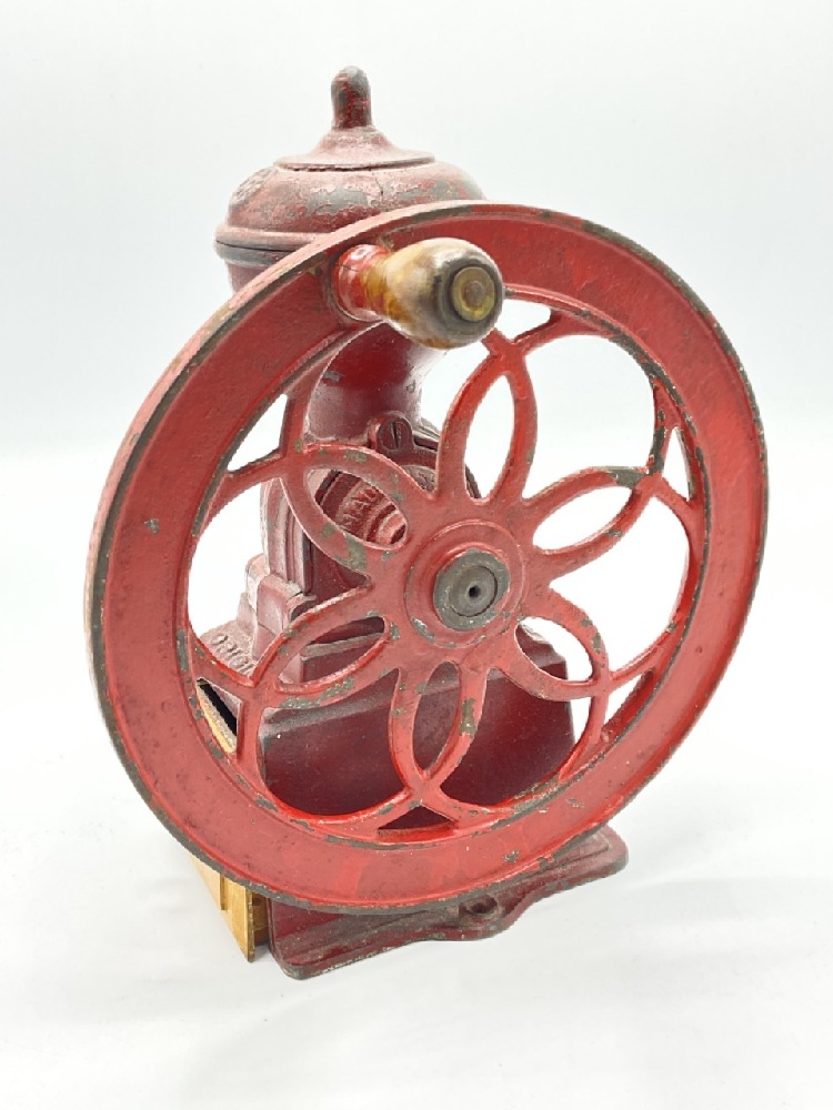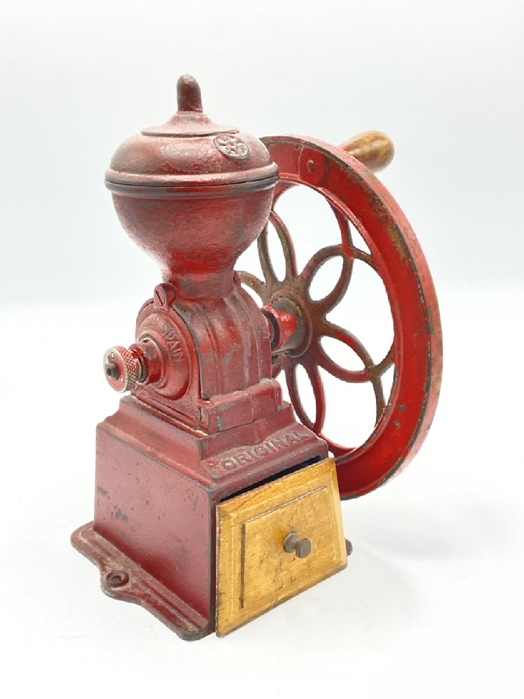Small countertop coffee mill with red paint. Made in Spain.