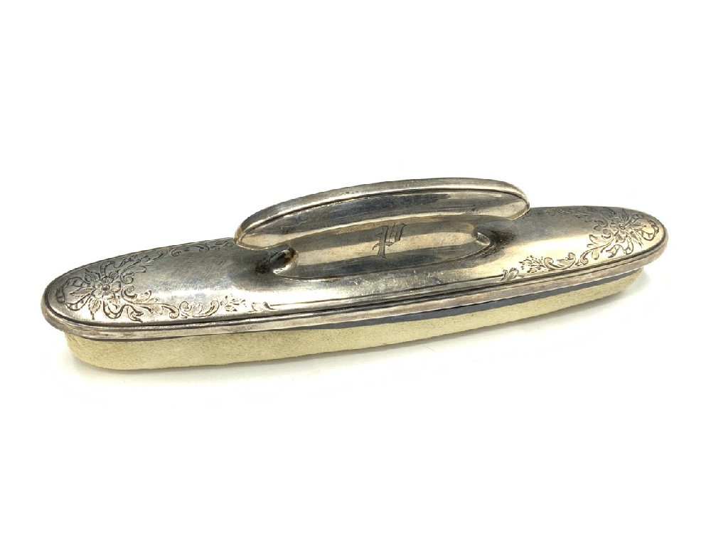 Sterling silver vanity set including brush, mirror and buffer.
