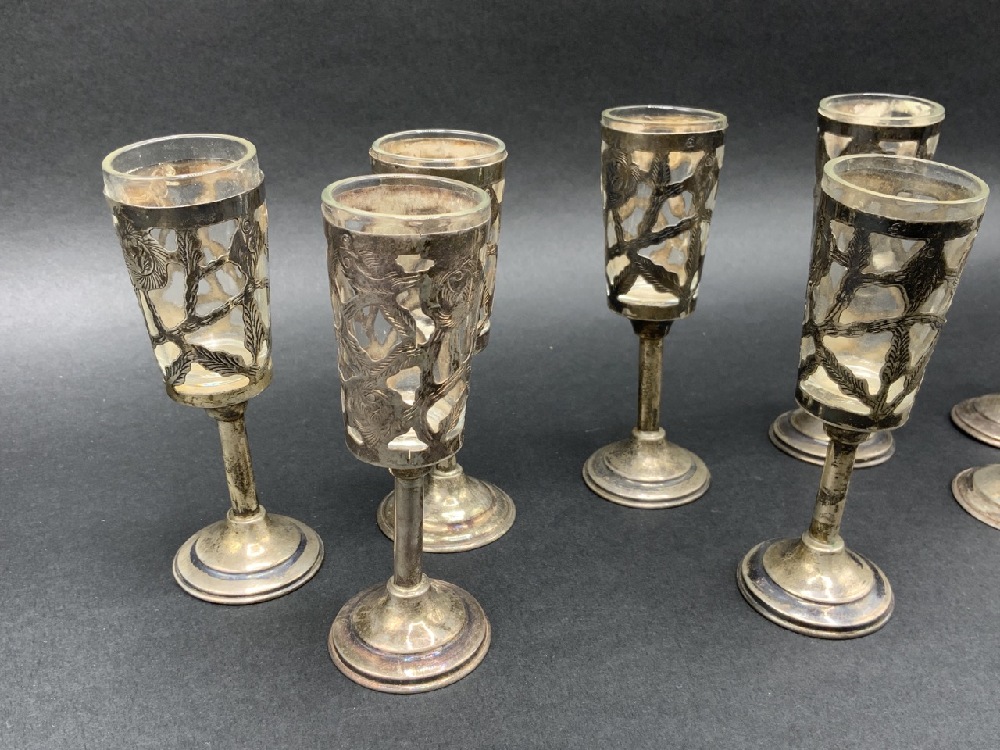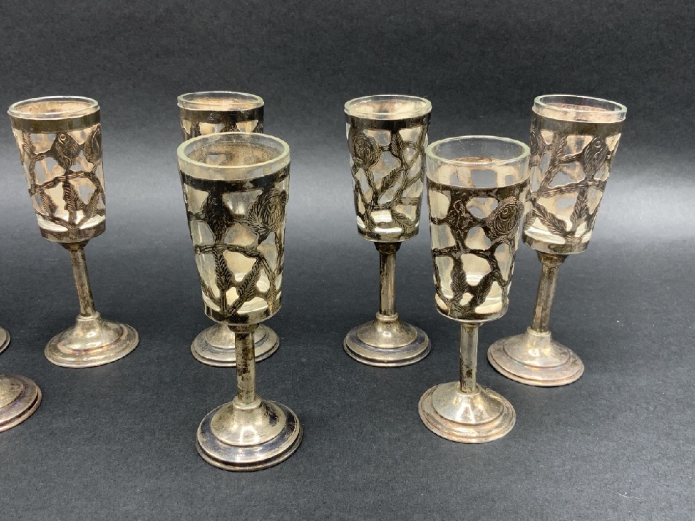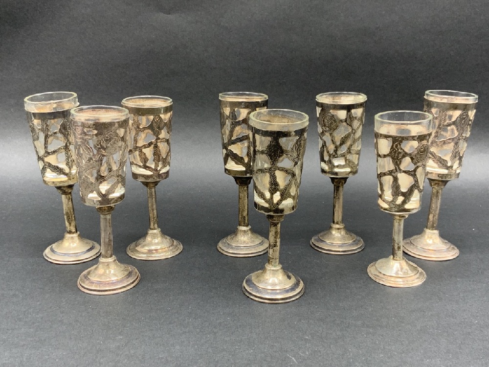 Eight (8) Sterling Silver and Glass Cordials.
