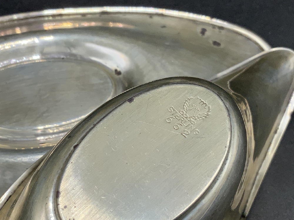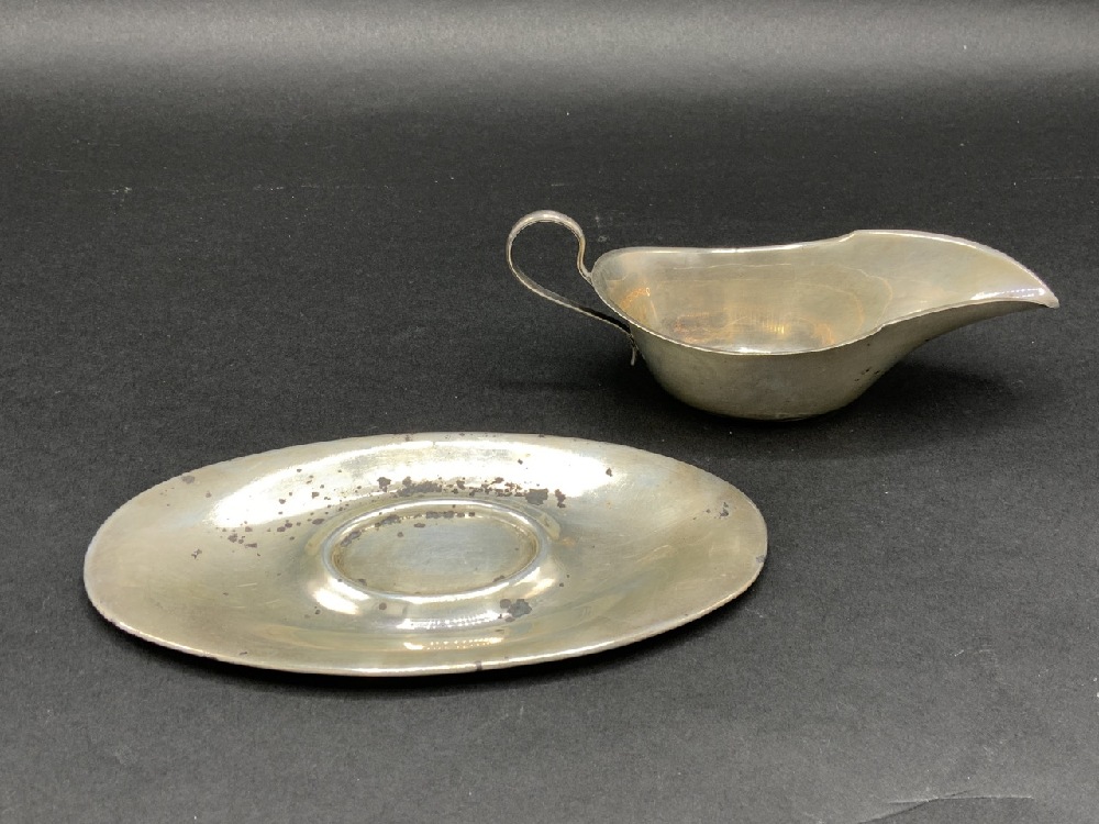 Sterling silver sauce boat and underplate.