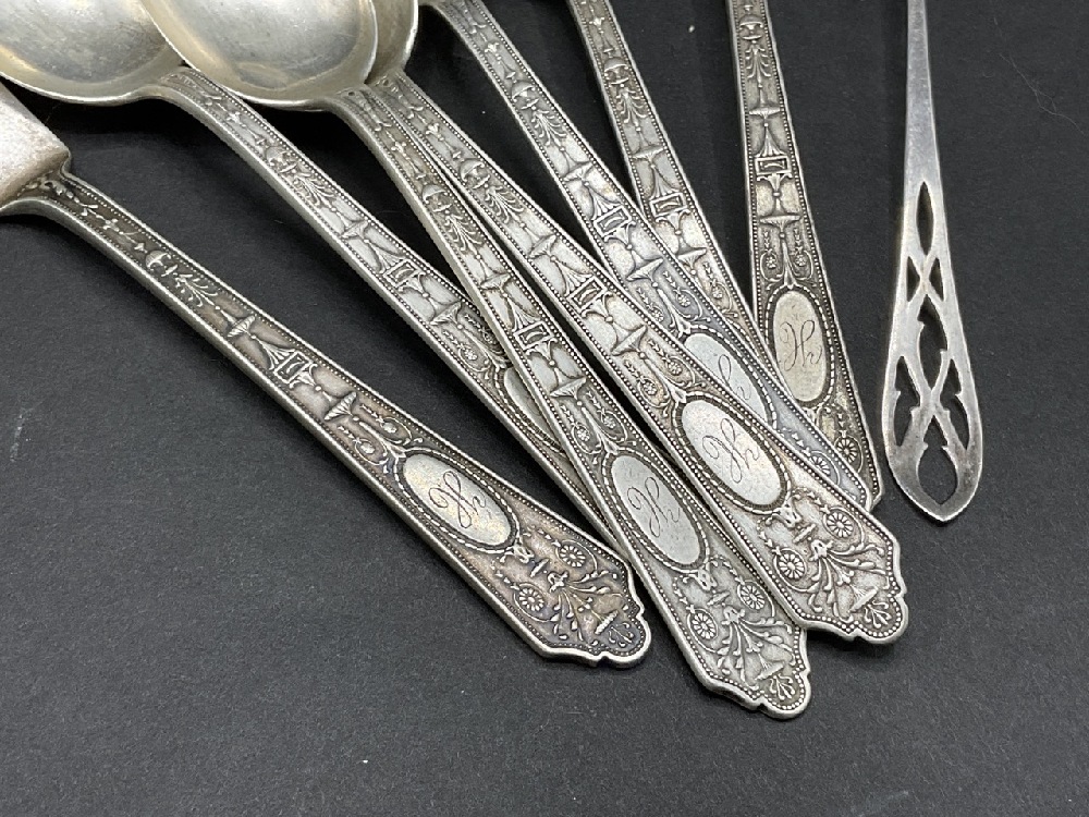 6 teaspoons, one serving knife and one small spoons.