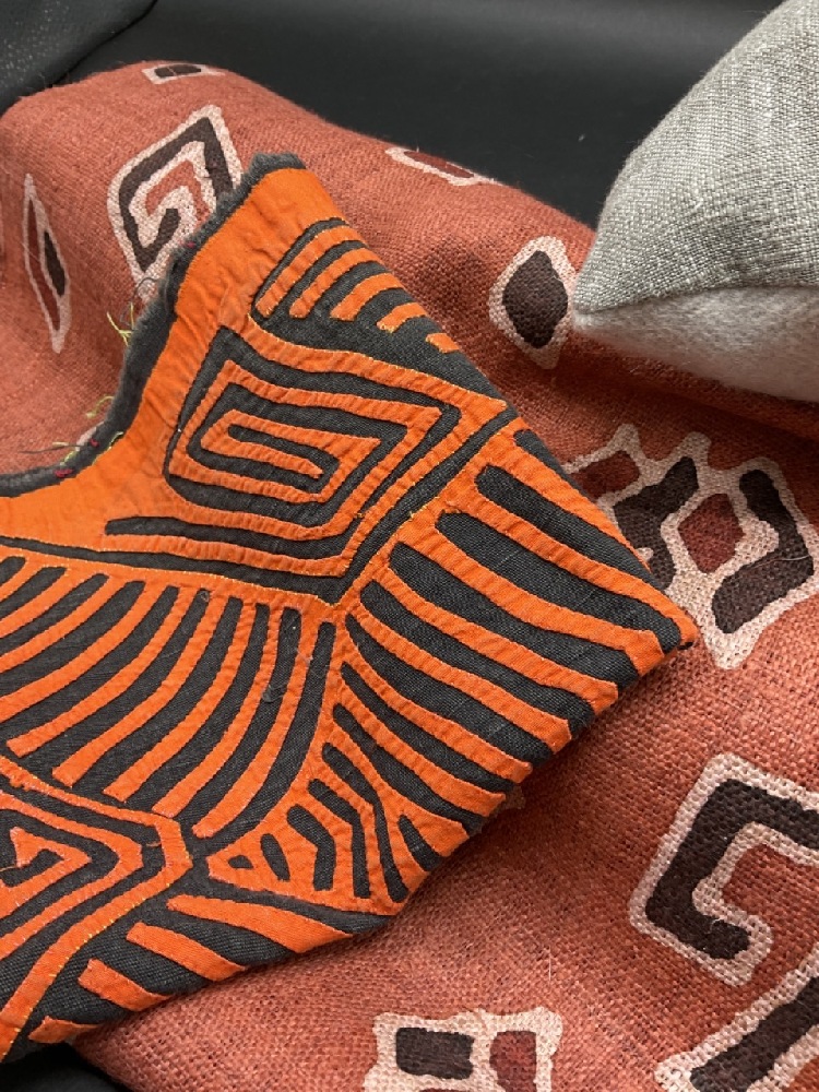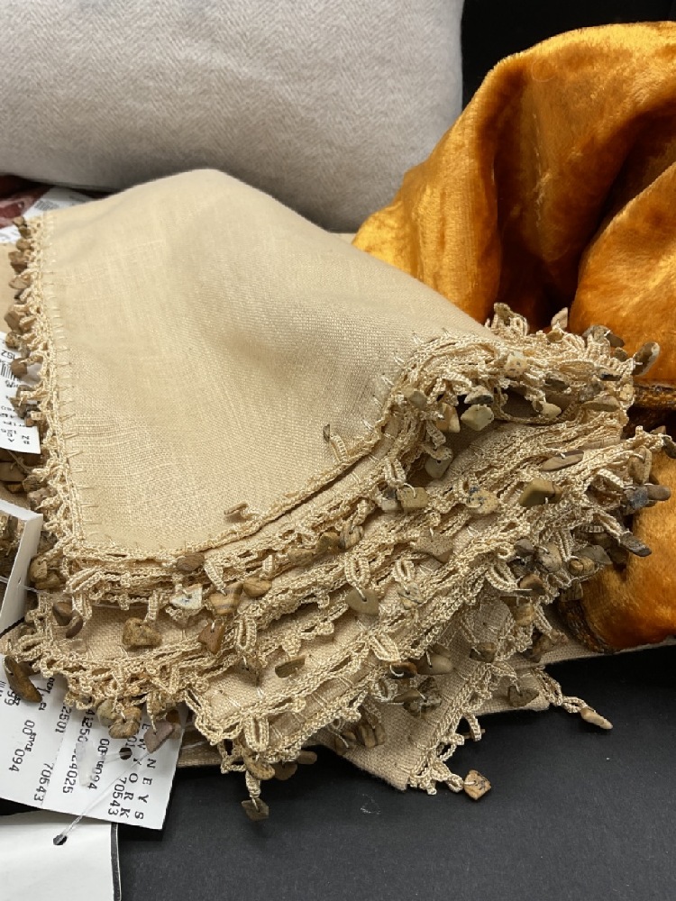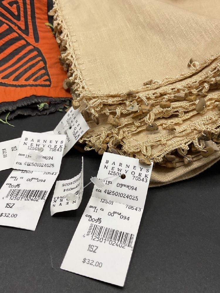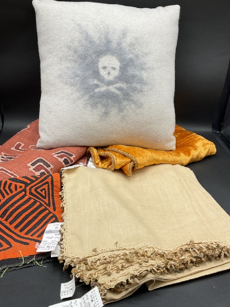 Unused Barney’s NWT napkins, Skull Pillow, African Runner and Cloth.