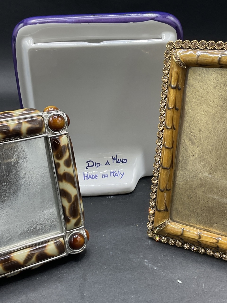 Two (2) Jay Strongwater and One (1) Italian Ceramic Picture Frame.