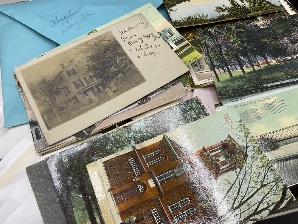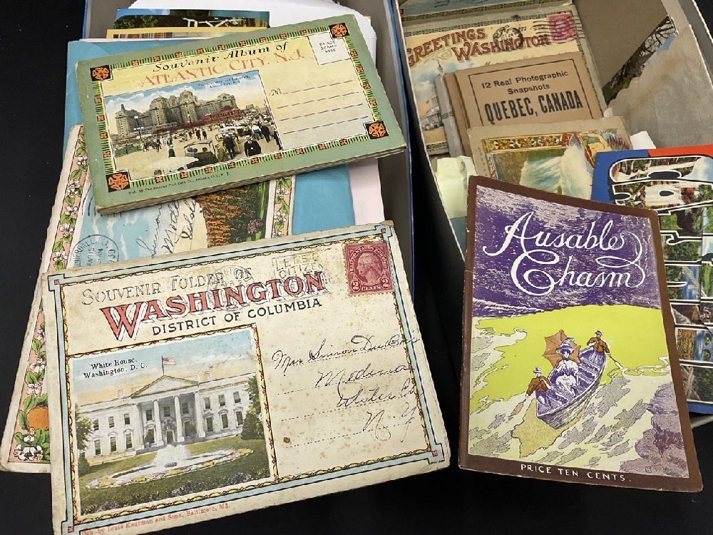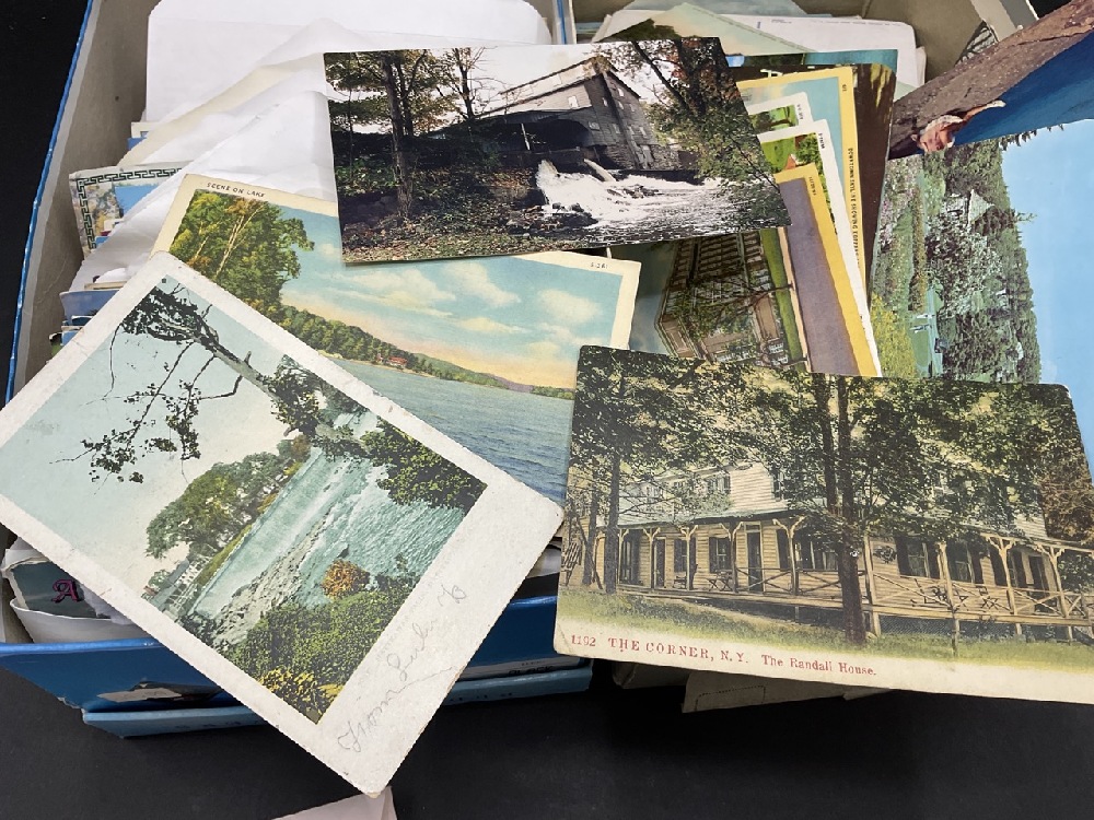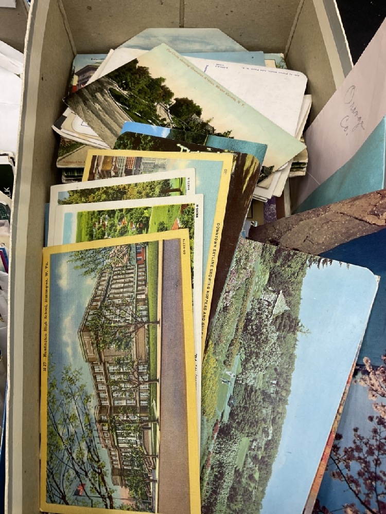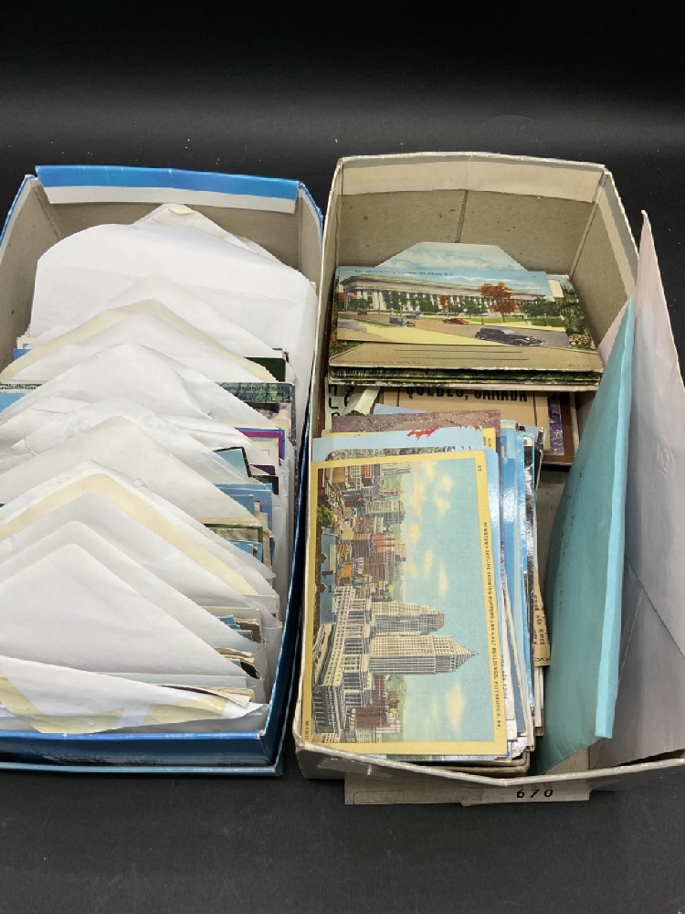 Two (2) shoe boxes full of estate found postcards. Most US and Local.