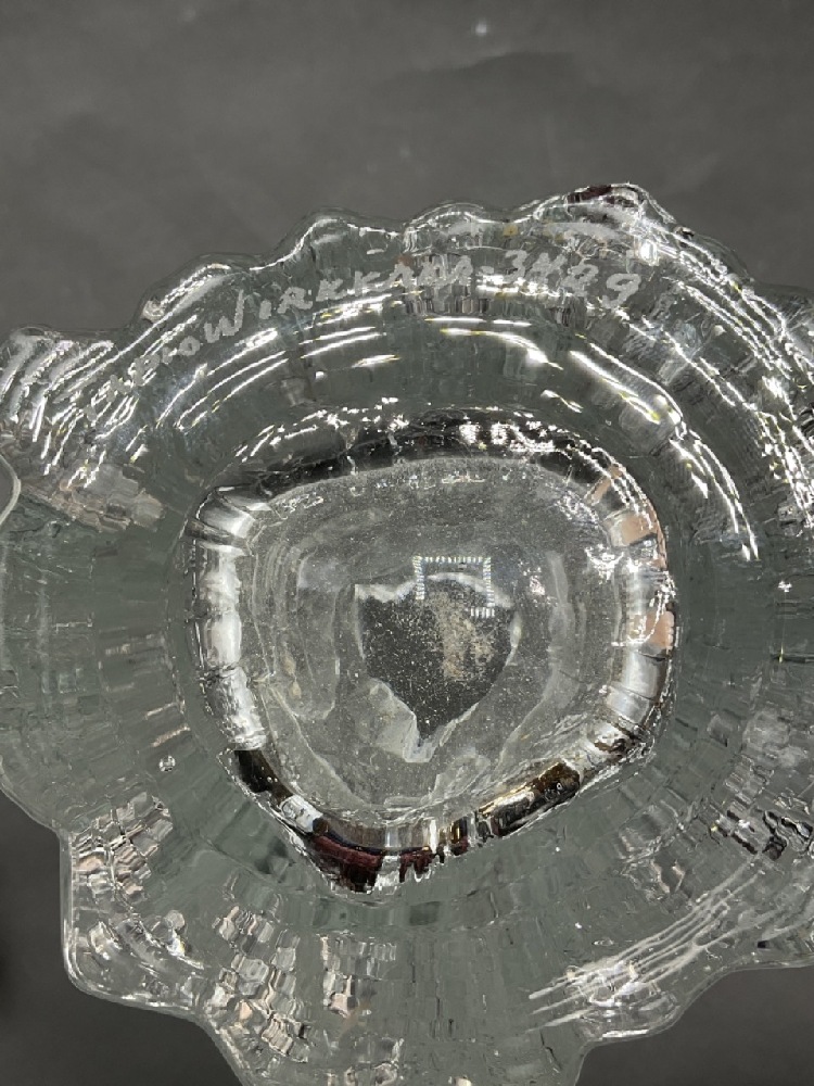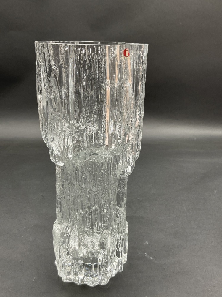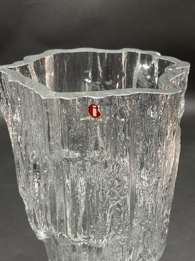 Tapio Wirkkala signed glass vase. Parial Finland sticker still present.