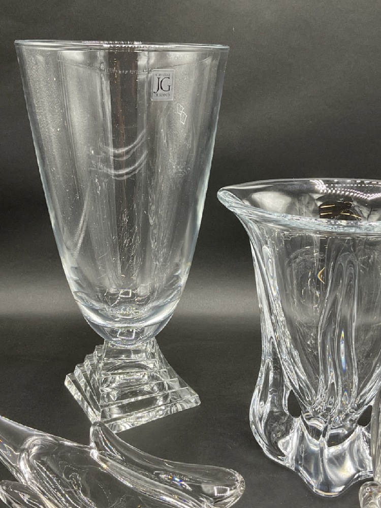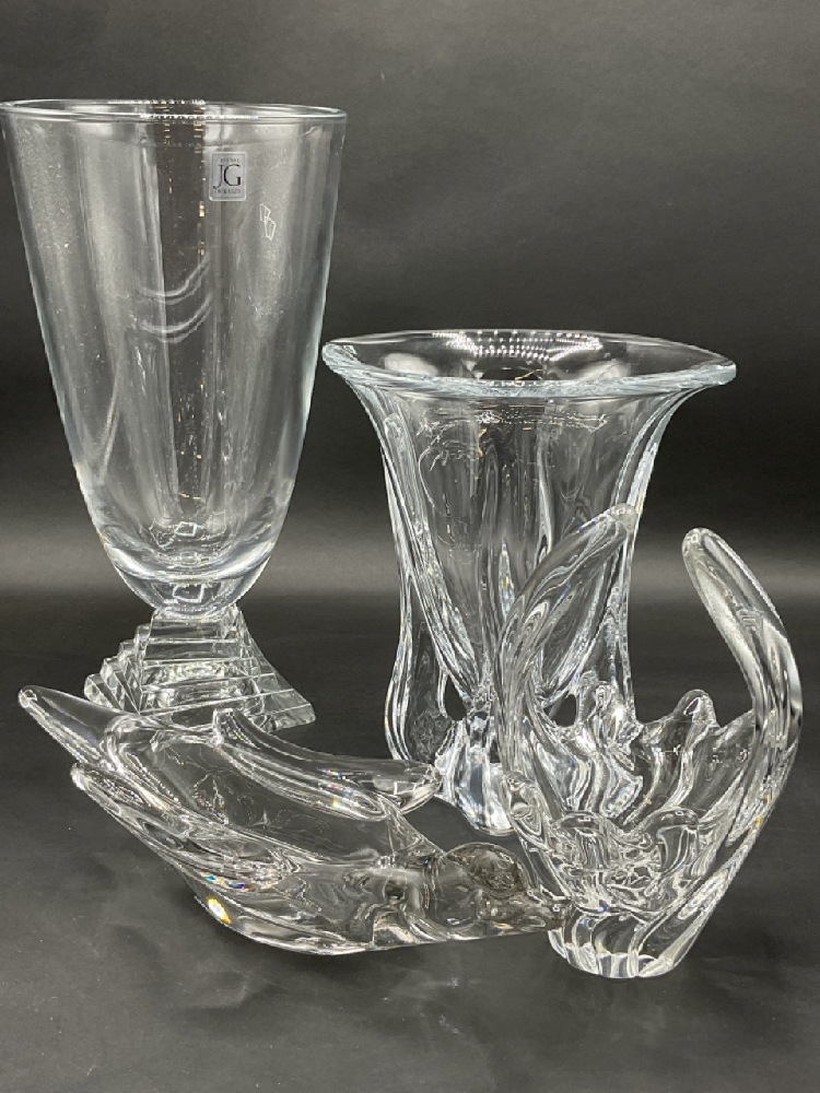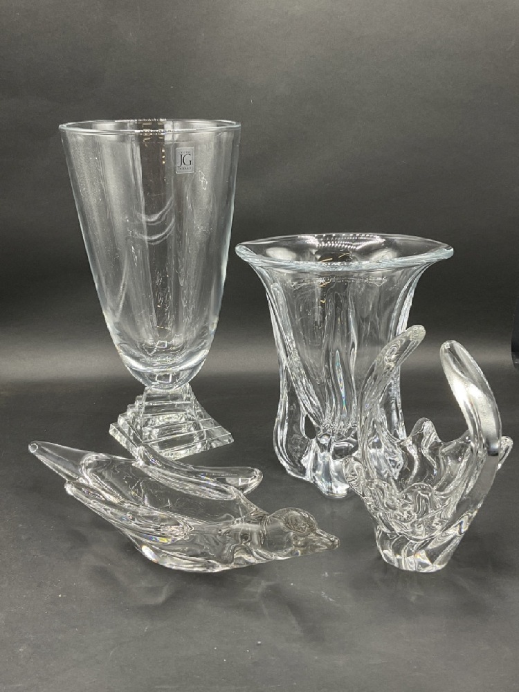 Four (4) Piece French Glass Vases and Table Wares. Durand Vase, Daum Bowl etc.