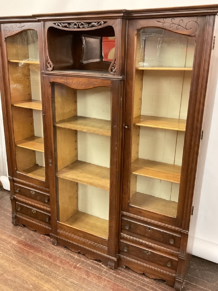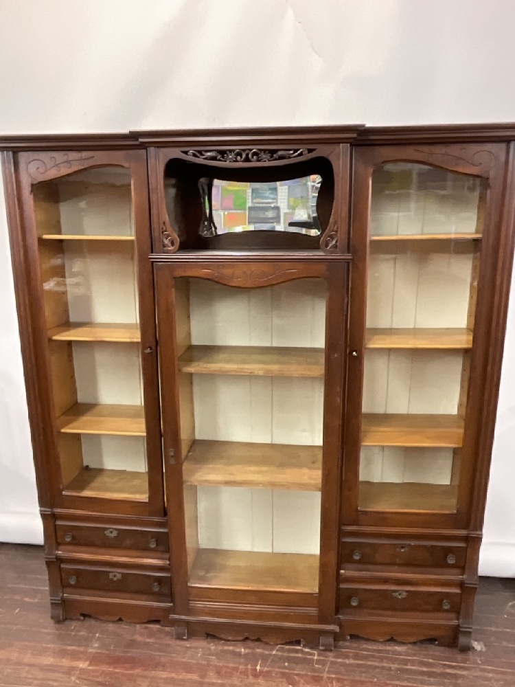 Victorian Eastlake Bookcase, Walnut Hardwood.