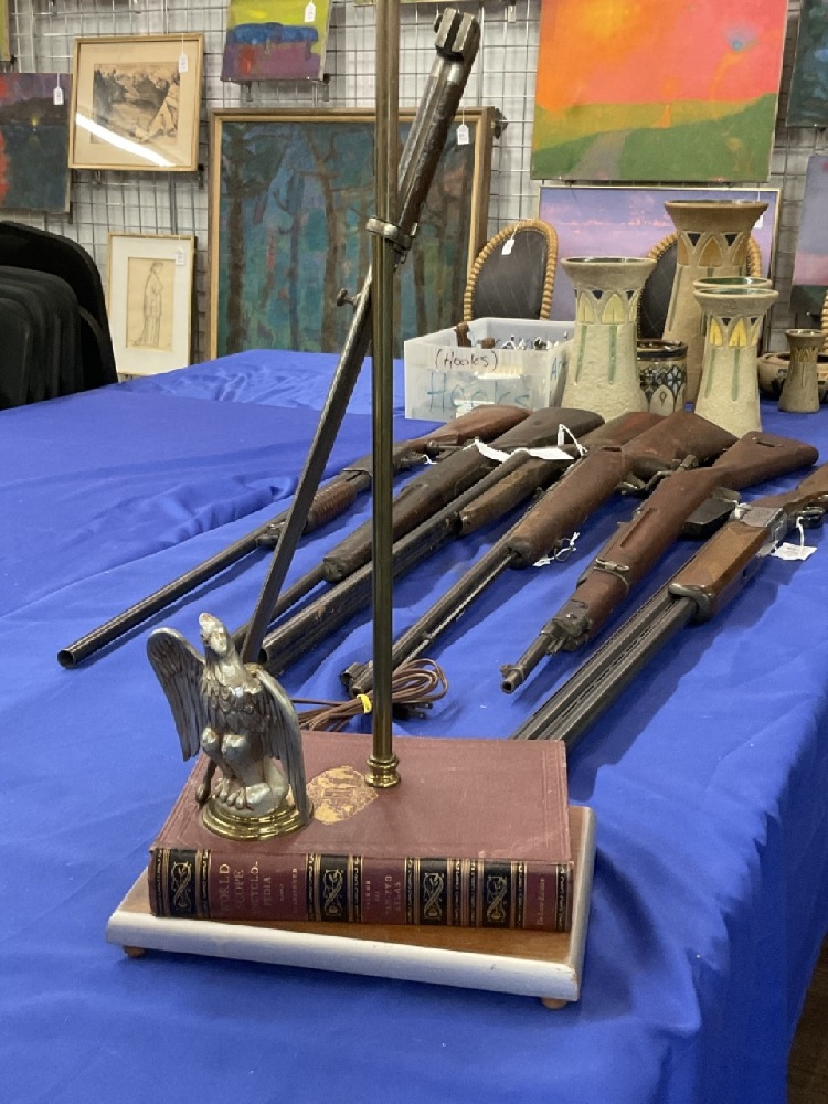 Desk Lamp with WW2 German Bayonet, Book and Eagle. Dimensions: 34”h x 10 1/2” x 7 1/2”