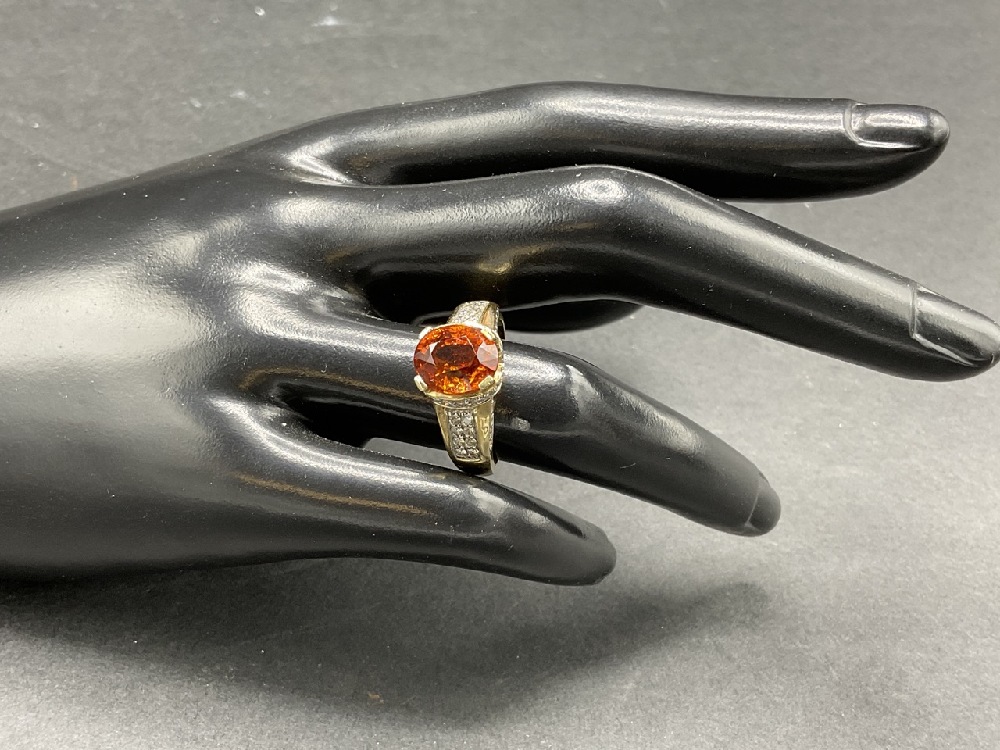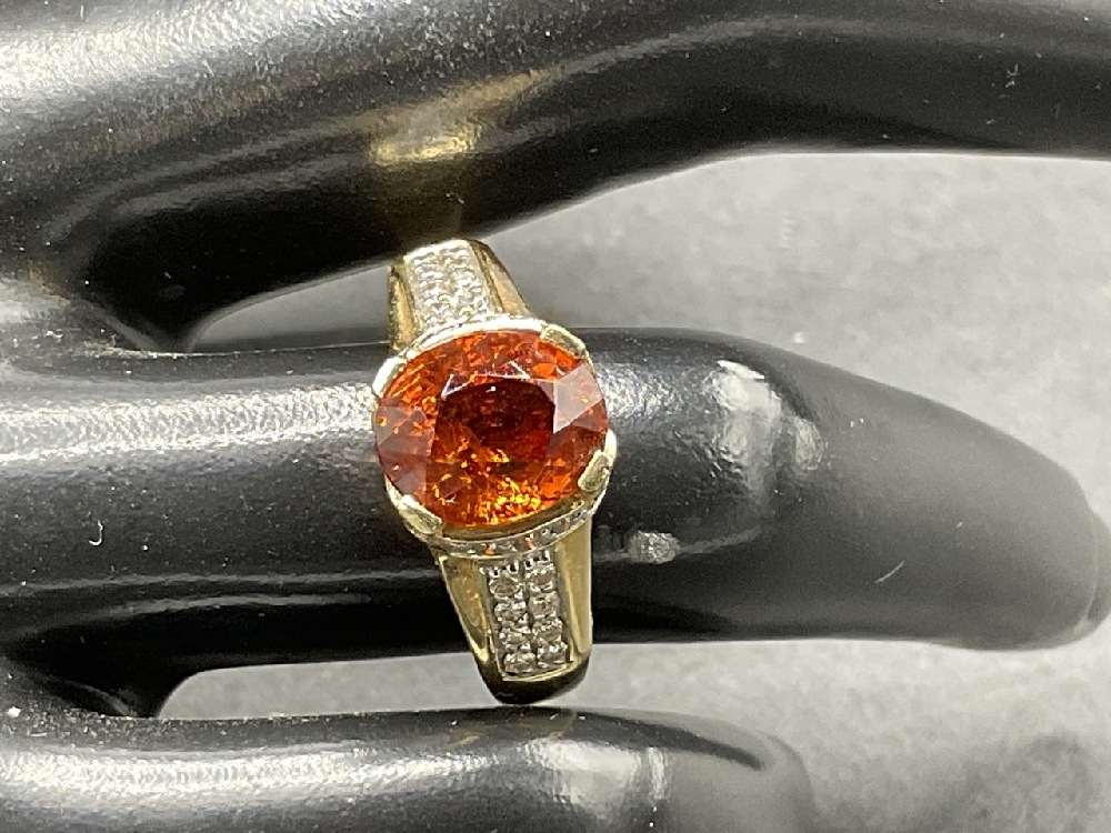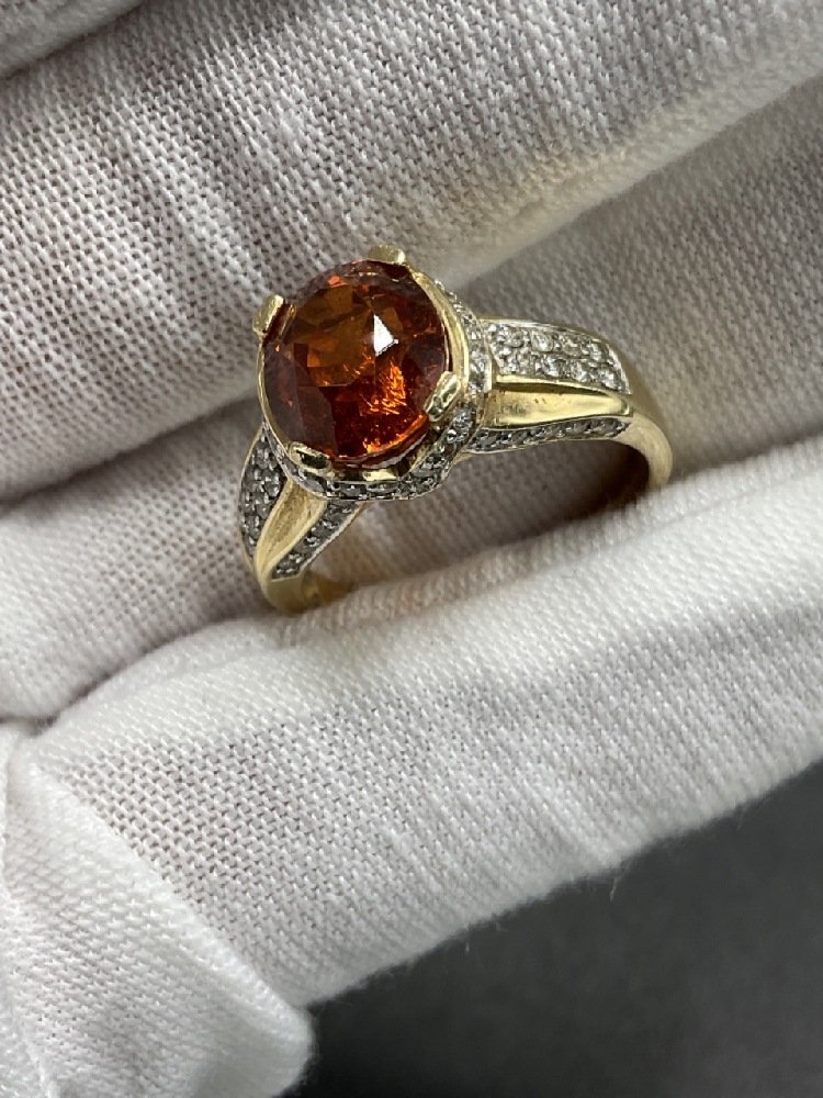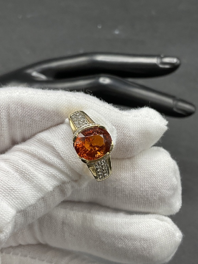 14K Mandarin Orange Citrine and Diamond Ring.