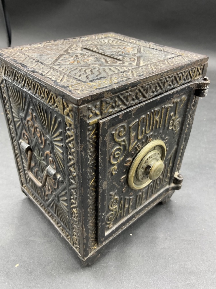 Antique Still Bank, Security Sterling Deposit Bank. Combo Included. Cast Iron c.1880