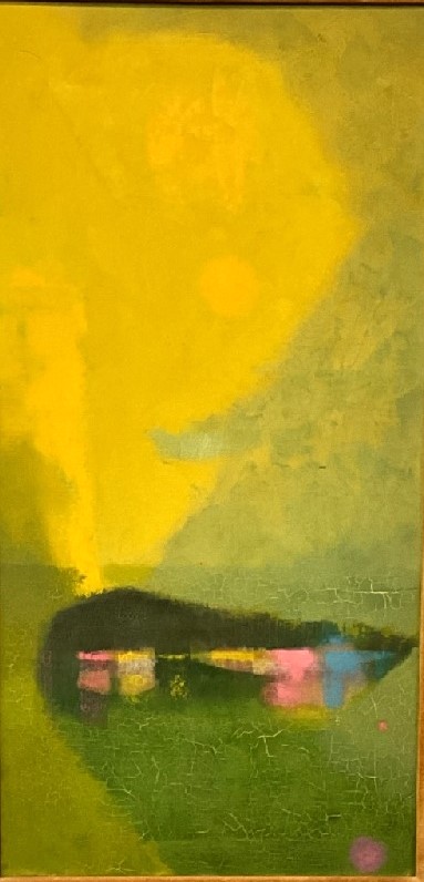 Untitled: Landscape with island and yellow sun.