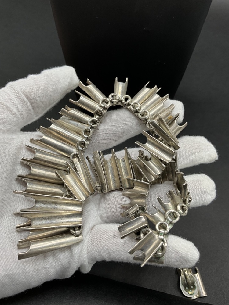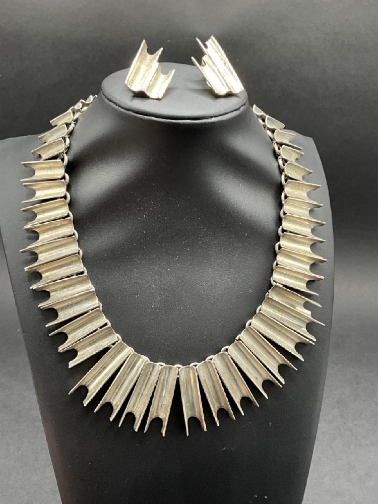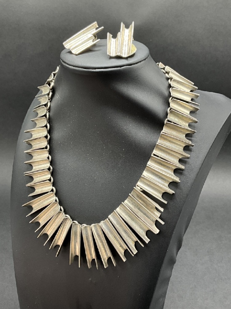 Mexican Sterling Silver Necklace and Earrings. Modernist design.