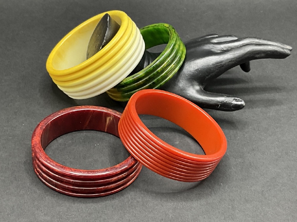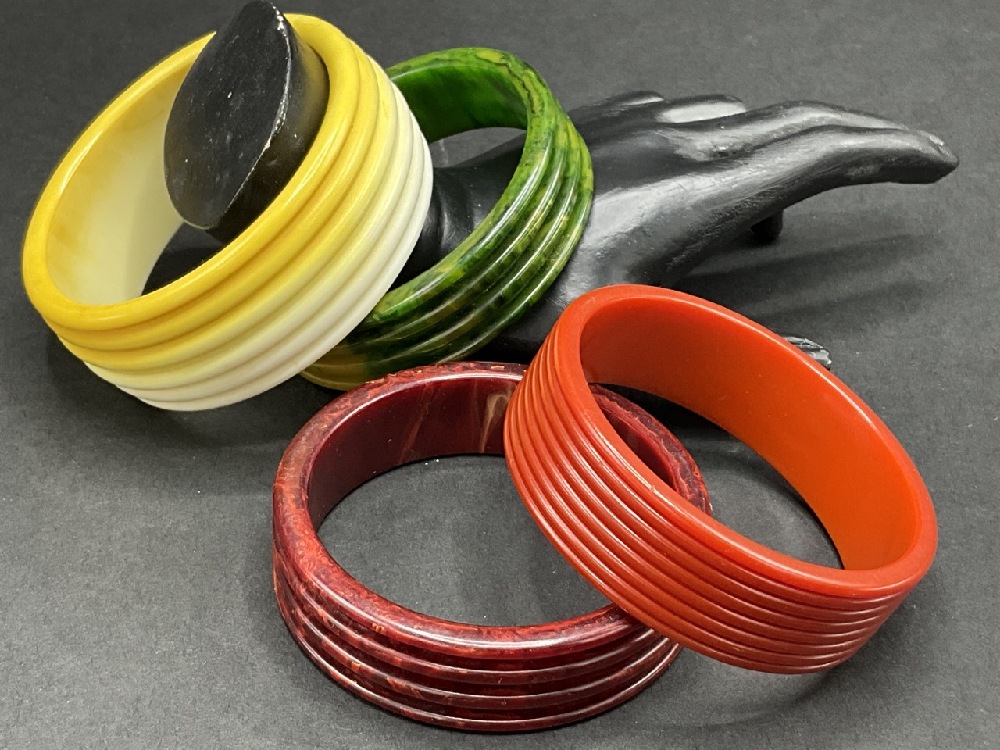 Four (4) Ribbed Bakelite Bangle Bracelets.