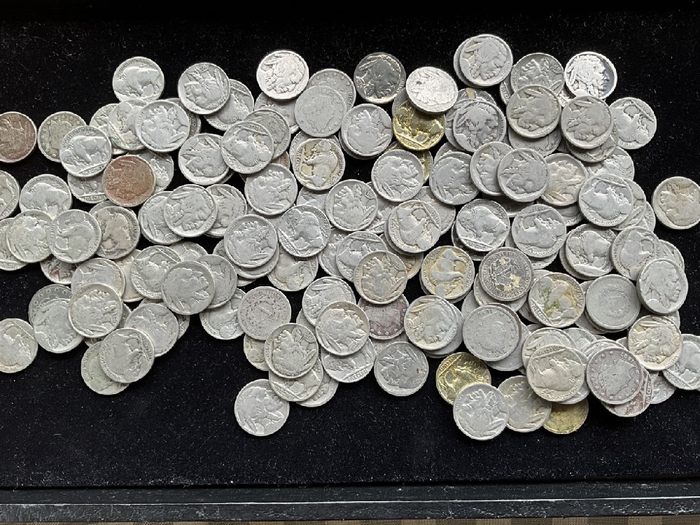 Mostly buffalo nickels, all circulated, most have dates