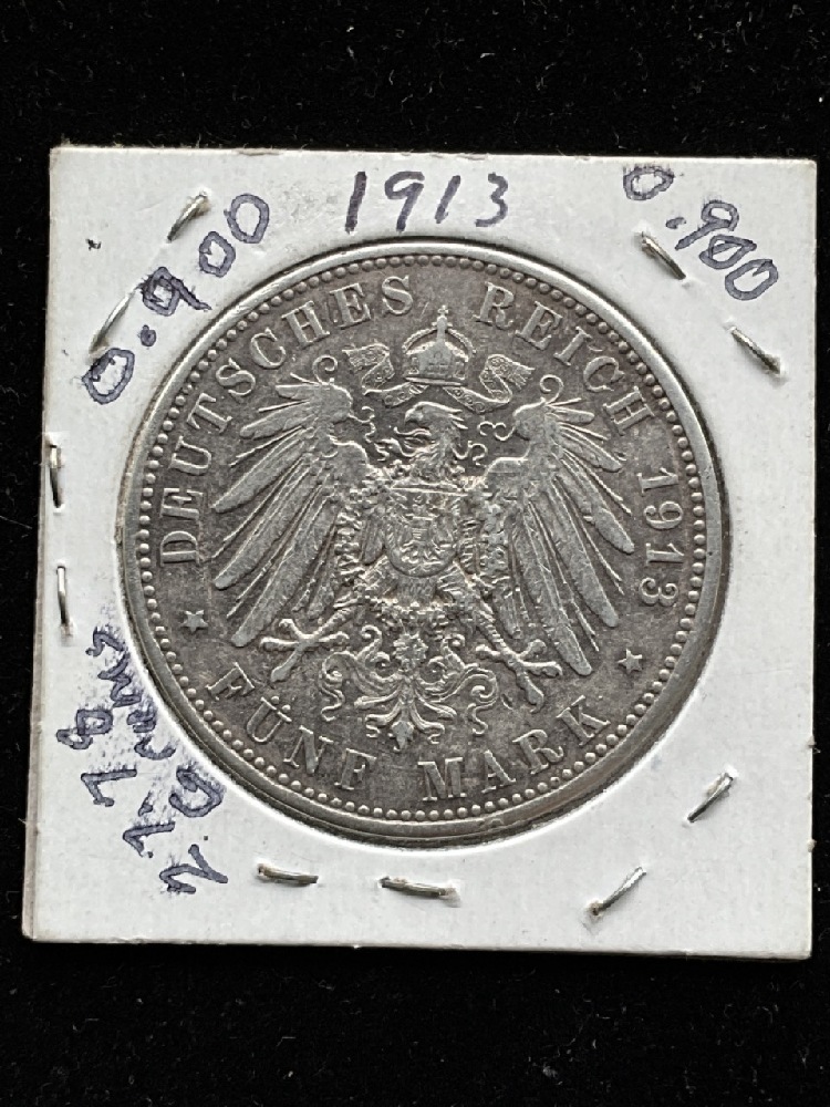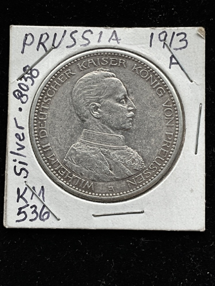 1913 A Silver Prussia 5 Mark Wilhelm II