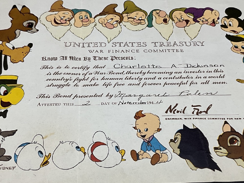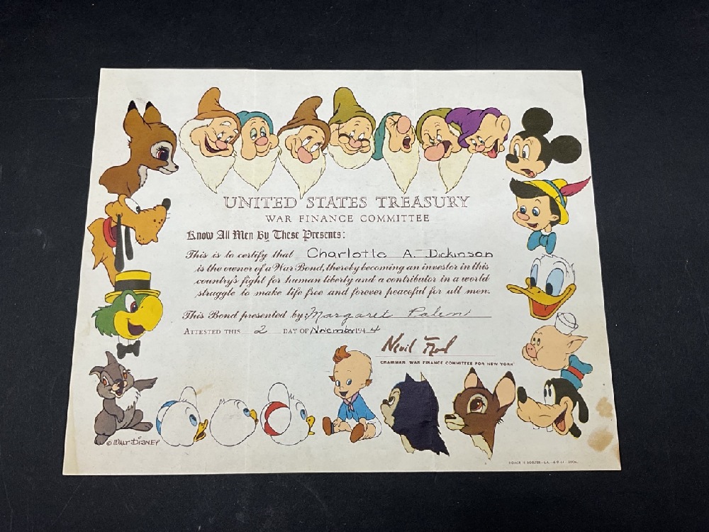 Walt Disney War Finance Bond WWII c.1944.