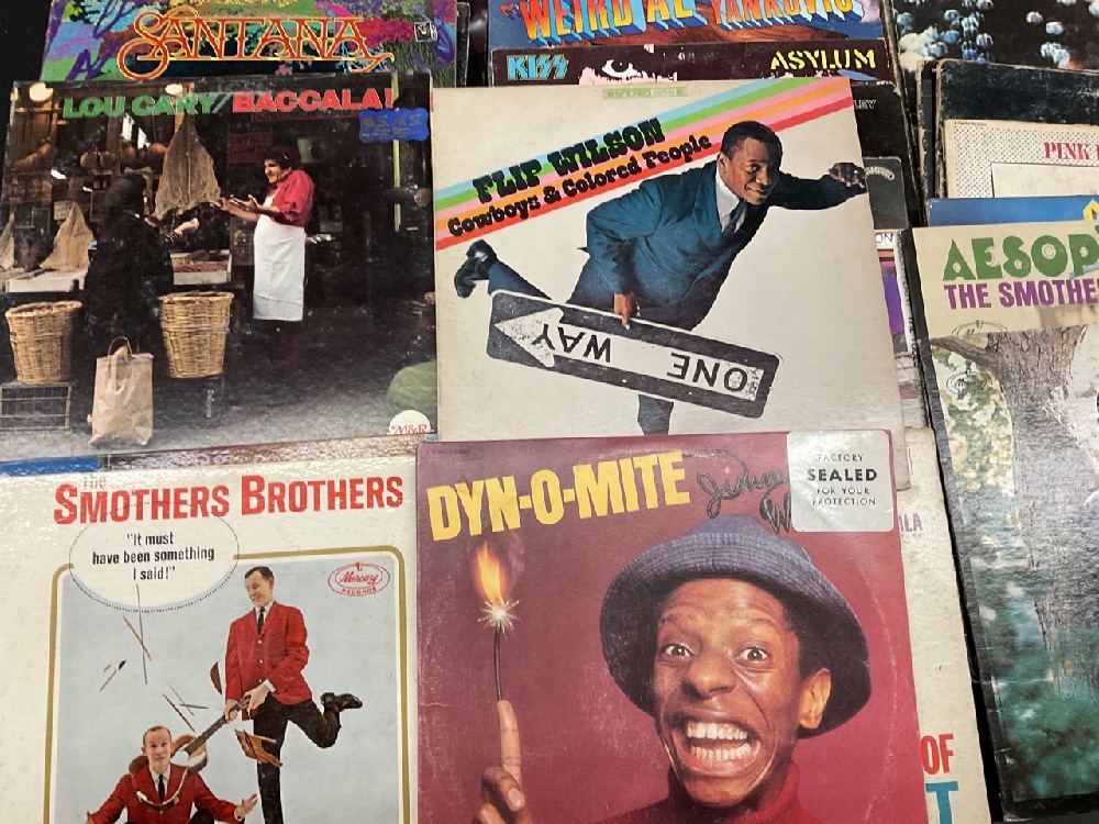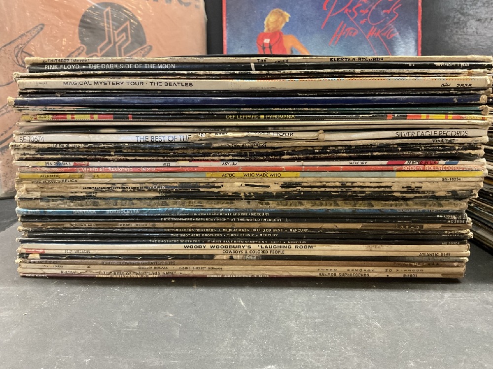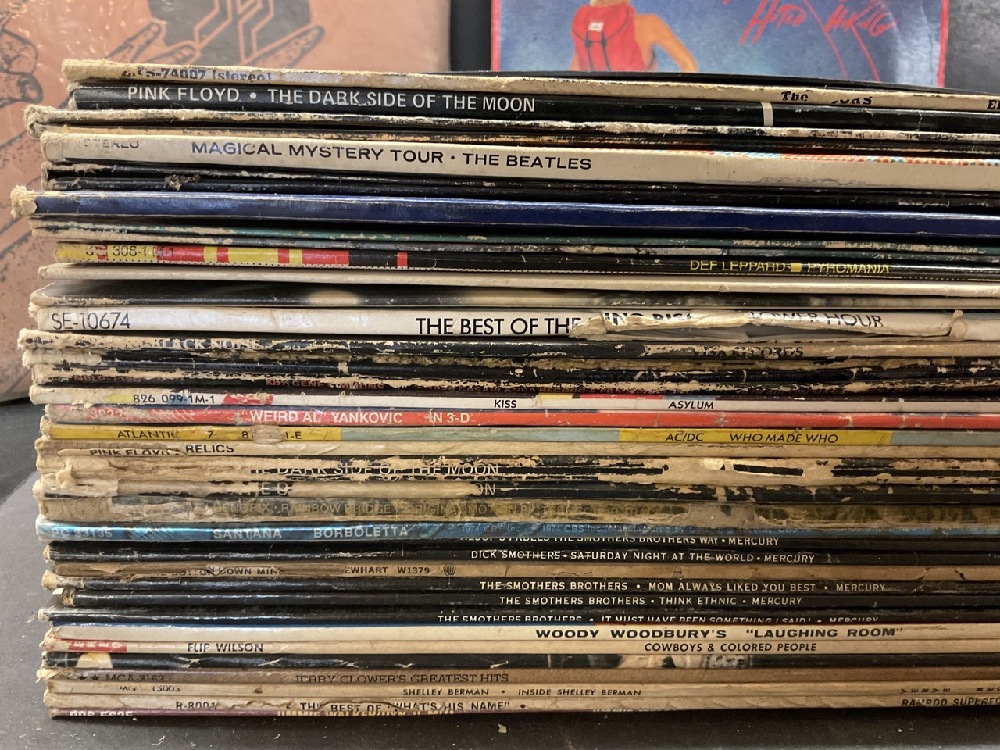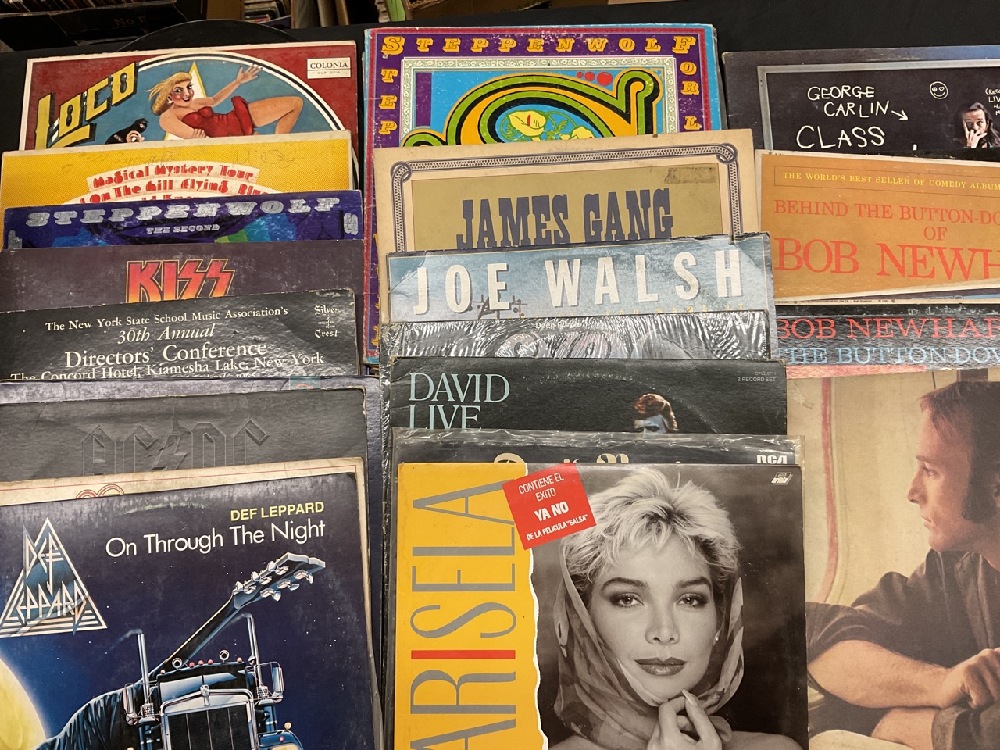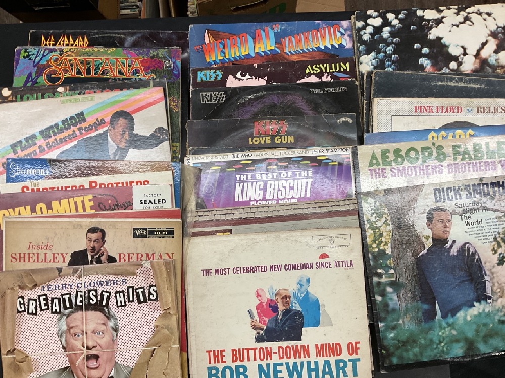 Approx. 75 Collection of Albums including:Pink Floyd, The Doors, Judas Priest,Santana,George Carlin,Robin Williams,George Burns,Deep Purple,AC/DC,The Smother’s Brothers,Kiss,Robin Williams,Def Leppard, and much more!