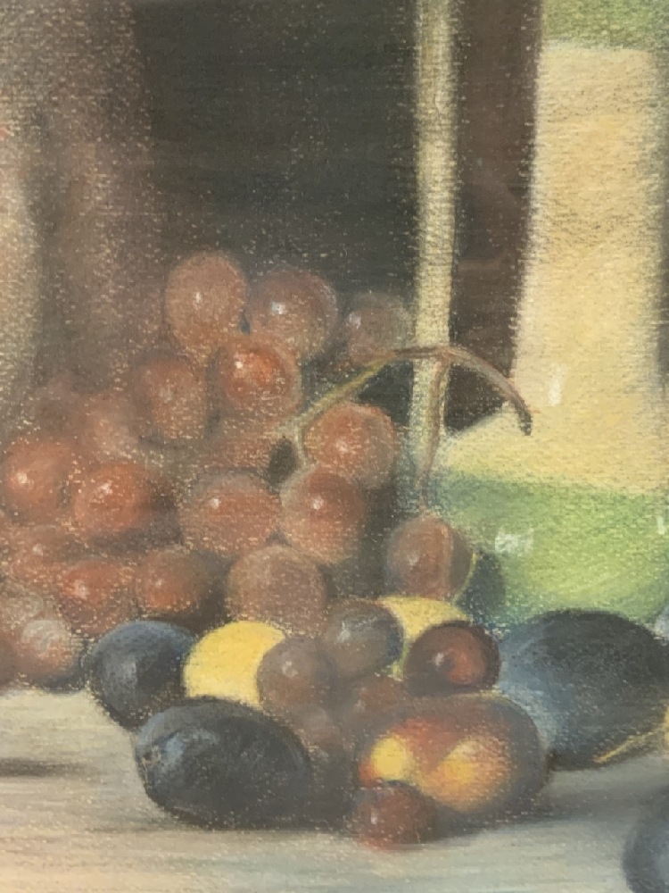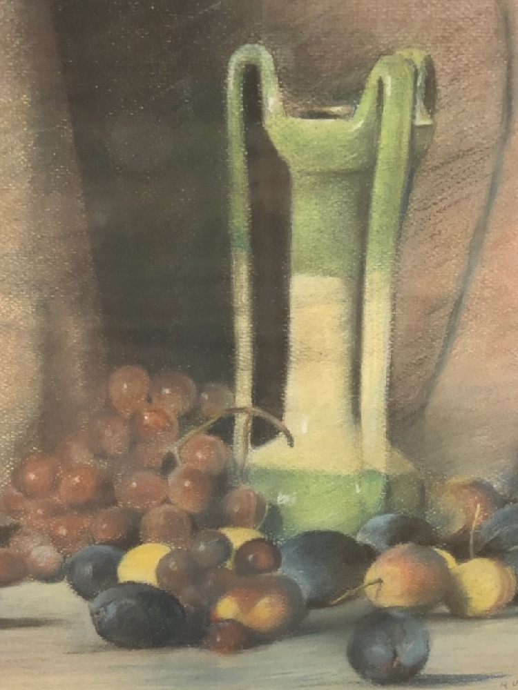Untitled: Still Life Pastel with Vase and Fruits