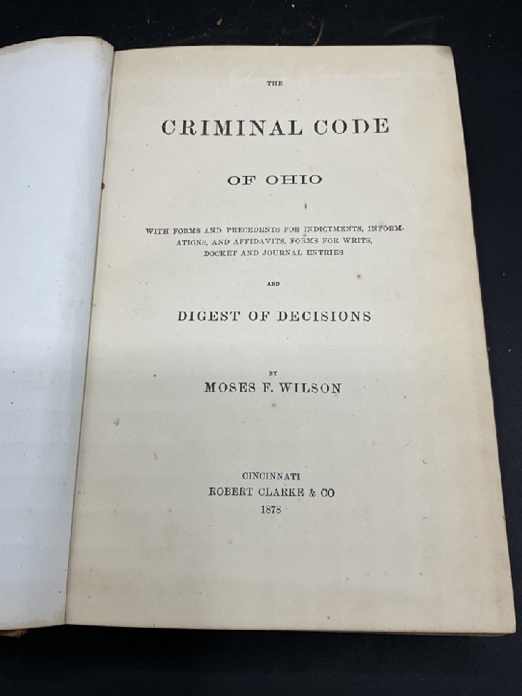Ohio Criminal Code by Moses F. Wilson. Cincinnati Robert Clarke & Co. 1878