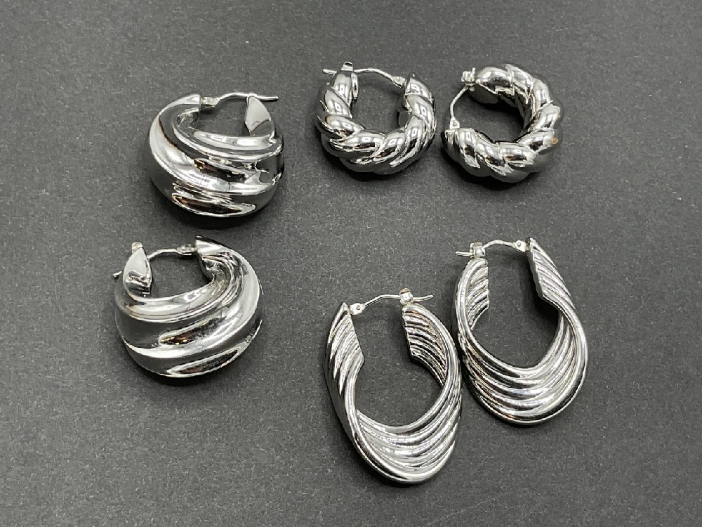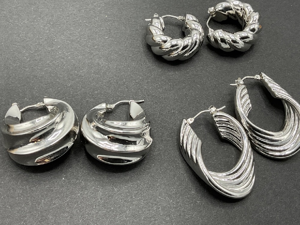 Three (3) Pairs of Milor signed Italian 14K white gold earrings.