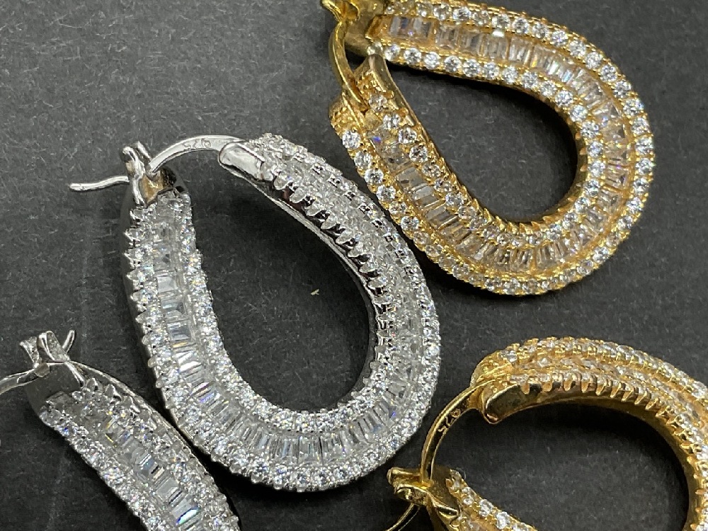 Two (2) Pairs of sterling silver jewelry earrings. One with gold vermeil.