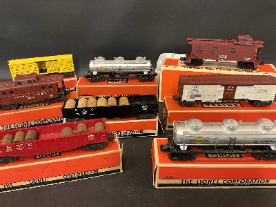 K-Line Electric Trains: NYC Railway Post Office Car K-71-4907, NYC Chicago Coach K-2181, NYC “Lake Placid” Pullman K-71-0005, NYC Diner K-0609, NYC Genesee Valley Observation K-2598, NYC Albany Coach K2182