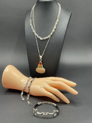 Search Item #: Keyword: Search Catalog Item #: Keyword: 20 items per page 50 items per page 100 items per page Go to page #: 1404 , 1405 , 1406 , 1407 , 1408 , 1409 #1 – Six (6) Sterling Silver Rings Six (6) Sterling Silver Rings. Chinese Puddingstone, One ring signed Lumani. Size range: 8-9. Estimated value: $50.00 - $200.00 More Info / Bid Now Track this Item Sold #1 – Six (6) Sterling Silver Rings Sold More Details More Info / Bid Track Item Six (6) Sterling Silver Rings. Chinese Puddingstone, One ring signed Lumani. Size range: 8-9. Estimated value: $50.00 - $200.00 #2 – Four (4) Sterling Silver Bracelets Four (4) Sterling Silver Bracelets. Judith Jack heavy marcasite and onyx bracelet etc. Total weight: 56 grams Estimated value: $50.00 - $200.00 More Info / Bid Now Track this Item Sold #2 – Four (4) Sterling Silver Bracelets Sold More Details More Info / Bid Track Item Four (4) Sterling Silver Bracelets. Judith Jack heavy marcasite and onyx bracelet etc. Total weight: 56 grams Estimated value: $50.00 - $200.00 #3 – Sterling Silver Diamond Bracelet Sterling silver diamond bracelet. Total weight: 31.7 grams 105 small diamonds set in sterling silver. Signed "SB" sterling. Dimensions: 2 3/4” and 1/2 “ thickness Estimated value: $100.00 - $200.00 More Info / Bid Now Track this Item Sold #3 – Sterling Silver Diamond Bracelet Sold More Details More Info / Bid Track Item Sterling silver diamond bracelet. Total weight: 31.7 grams 105 small diamonds set in sterling silver. Signed "SB" sterling. Dimensions: 2 3/4” and 1/2 “ thickness Estimated value: $100.00 - $200.00 #4 – Two (2) Sterling Silver Bracelets and Necklace Two (2) Sterling silver braceles and necklace. Total weight: 51 grams Dimensions: 7” and 18” and 1 3/4” black onyx marcasite pendant. Estimated value: $50.00 - $200.00 More Info / Bid Now Track this Item Sold #4 – Two (2) Sterling Silver Bracelets and Necklace Sold More Details More Info / Bid Track Item Two (2) Sterling silver braceles and necklace. Total weight: 51 grams Dimensions: 7” and 18” and 1 3/4” black onyx marcasite pendant. Estimated value: $50.00 - $200.00 #5 – Five (5) Piece Sterling Jewelry Group Five (5) Piece Sterling Jewelry Group. Mexican sterling horse bit necklace, gemstone bracelets and two (2) necklace. Total weight: 95 grams Estimated value: $50.00 - $200.00 More Info / Bid Now Track this Item Sold #5 – Five (5) Piece Sterling Jewelry Group Sold More Details More Info / Bid Track Item Five (5) Piece Sterling Jewelry Group. Mexican sterling horse bit necklace, gemstone bracelets and two (2) necklace. Total weight: 95 grams Estimated value: $50.00 - $200.00 #6 – 14K Diamond and Blue Sapphire Ring 14K Diamond and Blue Sapphire Ring. Size 7.5 Total weight: 4.7 grams Estimated value: $200.00 - $400.00 More Info / Bid Now Track this Item Sold #6 – 14K Diamond and Blue Sapphire Ring Sold More Details More Info / Bid Track Item 14K Diamond and Blue Sapphire Ring. Size 7.5 Total weight: 4.7 grams Estimated value: $200.00 - $400.00 #7 – 14K Italian Curb Link Bracelet Italian 14K Yellow Gold Curb Link Bracelet. Dimensions: 7" length. Total weight: 6.1 grams. Estimated value: $100.00 - $200.00 More Info / Bid Now Track this Item Sold #7 – 14K Italian Curb Link Bracelet Sold More Details More Info / Bid Track Item Italian 14K Yellow Gold Curb Link Bracelet. Dimensions: 7" length. Total weight: 6.1 grams. Estimated value: $100.00 - $200.00 #8 – 10K White Gold Men’s Diamond Ring 10K White Gold Men’s Diamond Ring. One side diamond stone missing. Size 10 Total weight: 4.4 grams Estimated value: $200.00 - $400.00 More Info / Bid Now Track this Item Sold #8 – 10K White Gold Men’s Diamond Ring Sold More Details More Info / Bid Track Item 10K White Gold Men’s Diamond Ring. One side diamond stone missing. Size 10 Total weight: 4.4 grams Estimated value: $200.00 - $400.00 #9 – 14K Hematite and 10K Gold Pearl Bracelets 14K Hematite and 10K Gold Pearl Bracelets. Dimensions: 7”-7 1/2” L Total weight: 18.3 grams Estimated value: $50.00 - $200.00 More Info / Bid Now Track this Item Sold #9 – 14K Hematite and 10K Gold Pearl Bracelets Sold More Details More Info / Bid Track Item 14K Hematite and 10K Gold Pearl Bracelets. Dimensions: 7”-7 1/2” L Total weight: 18.3 grams Estimated value: $50.00 - $200.00 #10 – Compiled Vintage Costume Jewelry Group w/ Sterling Compiled vintage costume jewelry group including a sterling silver diamond and sapphire necklace, majestic lion ring, early costume cornucopia clip etc. As seen in photograph preview. Estimated value: $50.00 - $200.00 More Info / Bid Now Track this Item Sold #10 – Compiled Vintage Costume Jewelry Group w/ Sterling Sold More Details More Info / Bid Track Item Compiled vintage costume jewelry group including a sterling silver diamond and sapphire necklace, majestic lion ring, early costume cornucopia clip etc. As seen in photograph preview. Estimated value: $50.00 - $200.00 #11 – 14K Persian Turquoise and Coral Bracelet Antique 14K yellow gold Persian turquoise and coral bracelet. Dimensions: 6 1/2” L Total weight: 29.5 grams Estimated value: $800.00 - $1,200.00 More Info / Bid Now Track this Item Sold #11 – 14K Persian Turquoise and Coral Bracelet Sold More Details More Info / Bid Track Item Antique 14K yellow gold Persian turquoise and coral bracelet. Dimensions: 6 1/2” L Total weight: 29.5 grams Estimated value: $800.00 - $1,200.00 #12 – 18K Pearl and Diamond Baguette Earrings 18K Pearl and Diamond Baguette Earrings. Dimensions: 1 1/2” x 3/4” Total weight: 15.9 grams Estimated value: $400.00 - $600.00 More Info / Bid Now Track this Item Sold #12 – 18K Pearl and Diamond Baguette Earrings Sold More Details More Info / Bid Track Item 18K Pearl and Diamond Baguette Earrings. Dimensions: 1 1/2” x 3/4” Total weight: 15.9 grams Estimated value: $400.00 - $600.00 #13 – 14K MMA Open Maze Geometric Labyrinth Necklace 28" 14K Yellow Gold MMA Op