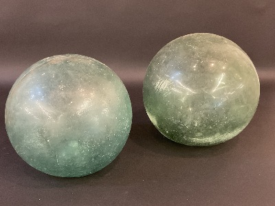 Vintage 10” and 11” Buoy Balls Aqua Glass.