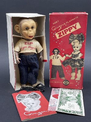 Vintage Revlon Ginger's Playmate Zippy w/ Box. Doll has some staining and green. Needs cleaning. Box very good condition.