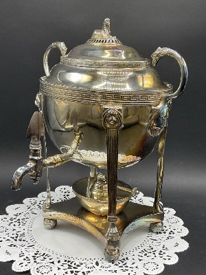 19th Century English Regency Sterling Silver Hot Water Kettle with Lions and Egyptian Sphinx. 19th English Hallmarks with Maker's Mark TH .