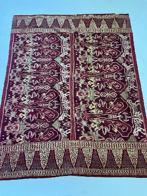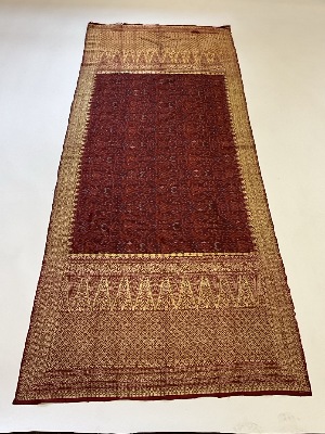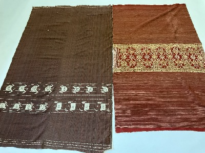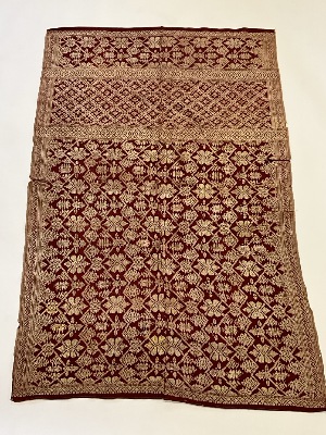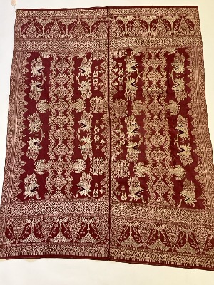 Indonesian Silk Sarong Textile Early 20th C. Two part construction. Silk with silk thread embroidery work.
