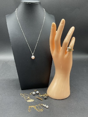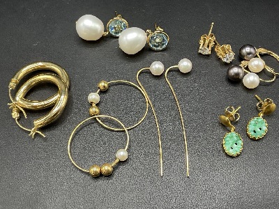 Estate Compiled Grouping of Pearl Strands. Two nice larger size pearl necklaces 22" and 18" with 14K gold clasps. An 8" bracelet, earrings and broken smaller strand necklace of pearls.