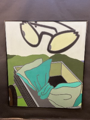 An Unsigned Vintage Pop Art Mural Oil on Canvas Painting. Provenance: Uptown Gallery Manhattan Label (Verso) Dimensions: 60" X 52 1/2"