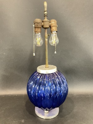 Unsigned Palmer Smith Style Aluminum/Glass Table Lamp. Dimensions: