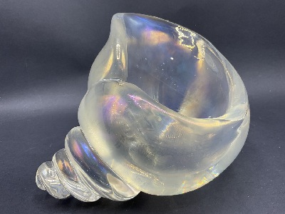 R. Lalique France Art Glass Conch Shell. Excellent Condition. Dimensions: 6 1/2” x 9 1/4” x 7”