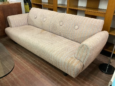 1950's MCM Design Sofa. Original to Period. Original Upholstery. Presents well. Some staining noted. Please see photograph preview. Unsigned and unattributed. Dimensions: 30 1/2" X 81 1/2" X 30 1/2"