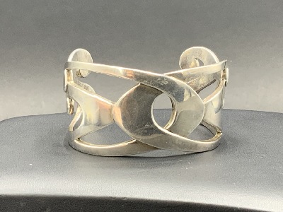 Sterling Silver Modernist Cuff Bracelet Signed WM. Good Condition, Please See Photograph Preview. Total weight: 76 g