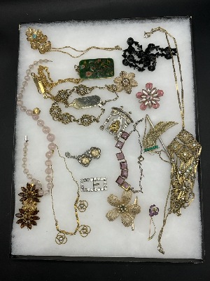 Search Item #: Keyword: Search Catalog Item #: Keyword: 20 items per page 50 items per page 100 items per page Go to page #: 1836 , 1837 , 1838 , 1839 , 1840 , 1841 #294 – Compiled Sterling Silver and American Coin Silver Flatware Sterling silver flatware grouping. Three (3) Coin silver spoons, Three (3) piece Lunt sterling spoon, fork and dinner knife, Two (2) sterling silver souvenir spoons and 800 silver handled server. As seen in photograph preview. Coin silver weight: 102.6 grams and sterling weight is 151.6 grams. Overall 254.2 grams. (knife and 800 server not included in weights) Estimated value: $200.00 - $400.00 More Info / Bid Now Track this Item Sold #294 – Compiled Sterling Silver and American Coin Silver Flatware Sold More Details More Info / Bid Track Item Sterling silver flatware grouping. Three (3) Coin silver spoons, Three (3) piece Lunt sterling spoon, fork and dinner knife, Two (2) sterling silver souvenir spoons and 800 silver handled server. As seen in photograph preview. Coin silver weight: 102.6 grams and sterling weight is 151.6 grams. Overall 254.2 grams. (knife and 800 server not included in weights) Estimated value: $200.00 - $400.00 #295 – Eleven (11) Vintage Sterling Silver Bracelets Eleven (11) Piece Sterling Silver Bracelets and Watchband. Sterling silver bangles, vintage bracelets, chain link bracelets, enameled souvenir bracelet. As seen in photograph preview. Total weight: 191 grams. Estimated value: $100.00 - $200.00 More Info / Bid Now Track this Item Sold #295 – Eleven (11) Vintage Sterling Silver Bracelets Sold More Details More Info / Bid Track Item Eleven (11) Piece Sterling Silver Bracelets and Watchband. Sterling silver bangles, vintage bracelets, chain link bracelets, enameled souvenir bracelet. As seen in photograph preview. Total weight: 191 grams. Estimated value: $100.00 - $200.00 #296 – Signed Navajo Sterling Silver Necklaces and Pendant Signed Navajo Sterling Silver Necklaces and Pendant. P.Sanchez, Charlie Sterling & 12 K GF, Feather Pendant 24.6 grams,Remaining Weight 39.1 grams Overall: 63.7 grams. Estimated value: $50.00 - $100.00 More Info / Bid Now Track this Item Sold #296 – Signed Navajo Sterling Silver Necklaces and Pendant Sold More Details More Info / Bid Track Item Signed Navajo Sterling Silver Necklaces and Pendant. P.Sanchez, Charlie Sterling & 12 K GF, Feather Pendant 24.6 grams,Remaining Weight 39.1 grams Overall: 63.7 grams. Estimated value: $50.00 - $100.00 #297 – 14K Yellow Gold Lady’s Wedding Band Ring 14K Yellow Gold Lady’s Wedding Band Ring. Size 9 Total Weight 1.7 grams Estimated value: $100.00 - $200.00 More Info / Bid Now Track this Item Sold #297 – 14K Yellow Gold Lady’s Wedding Band Ring Sold More Details More Info / Bid Track Item 14K Yellow Gold Lady’s Wedding Band Ring. Size 9 Total Weight 1.7 grams Estimated value: $100.00 - $200.00 #298 – Dated 1887 Sterling Silver Match Safe with Chain Dated 1887 Sterling Silver Match Safe with Chain 22” Total Weight: 36 grams Estimated value: $100.00 - $200.00 More Info / Bid Now Track this Item Sold #298 – Dated 1887 Sterling Silver Match Safe with Chain Sold More Details More Info / Bid Track Item Dated 1887 Sterling Silver Match Safe with Chain 22” Total Weight: 36 grams Estimated value: $100.00 - $200.00 #299 – 14K Yellow Gold Mabe Pearl Cocktail Ring 14K Yellow Gold Mabe Pearl Cocktail Ring. Total weight: 12.3 grams, Size 4 Estimated value: $400.00 - $600.00 More Info / Bid Now Track this Item Sold #299 – 14K Yellow Gold Mabe Pearl Cocktail Ring Sold More Details More Info / Bid Track Item 14K Yellow Gold Mabe Pearl Cocktail Ring. Total weight: 12.3 grams, Size 4 Estimated value: $400.00 - $600.00 #300 – Four (4) Art Deco Glass Necklaces Four (4) Art Deco Glass Necklaces. Good condition. As seen in photograph preview. Estimated value: $50.00 - $200.00 More Info / Bid Now Track this Item Sold #300 – Four (4) Art Deco Glass Necklaces Sold More Details More Info / Bid Track Item Four (4) Art Deco Glass Necklaces. Good condition. As seen in photograph preview. Estimated value: $50.00 - $200.00 #301 – Compiled Sterling Silver Jewelry Group 250 grams Compiled sterling silver jewelry group. Necklaces, bracelets and pin. As seen in photograph preview. Total weight: 250 grams. Estimated value: $50.00 - $200.00 More Info / Bid Now Track this Item Sold #301 – Compiled Sterling Silver Jewelry Group 250 grams Sold More Details More Info / Bid Track Item Compiled sterling silver jewelry group. Necklaces, bracelets and pin. As seen in photograph preview. Total weight: 250 grams. Estimated value: $50.00 - $200.00 #302 – Compiled Costume Jewelry Grouping FIRST PHOTO MISSING- REDO Costume Jewelry Box Lot. Brooklyn Estate. Including sterling silver, gold filled necklace, lady's watches etc. As seen in photograph preview. As seen in photograph preview. Estimated value: $50.00 - $200.00 More Info / Bid Now Track this Item Sold #302 – Compiled Costume Jewelry Grouping FIRST PHOTO MISSING- REDO Sold More Details More Info / Bid Track Item Costume Jewelry Box Lot. Brooklyn Estate. Including sterling silver, gold filled necklace, lady's watches etc. As seen in photograph preview. As seen in photograph preview. Estimated value: $50.00 - $200.00 #304 – Gemstone and Crystal w/ Sterling Silver Jewelry Lot Gemstone and Crystal w/ Sterling Silver Jewelry Lot. Total weight: 575 Grams. Estimated value: $50.00 - $200.00 More Info / Bid Now Track this Item Sold #304 – Gemstone and Crystal w/ Sterling Silver Jewelry Lot Sold More Details More Info / Bid Track Item Gemstone and Crystal w/ Sterling Silver Jewelry Lot. Total weight: 575 Grams. Estimated value: $50.00 - $200.00 #305 – Compiled Sterling Silver Bracelet Grouping - 210.6 Grams - Simmons, KDN, Silpada Sterling Silver Bracelet Grouping - 210.6 Grams - Simmons, KDN, Silpada. Estimated value: $100.00 - $200.00 More Info / Bid Now Track this Item Sold #305 – Compiled Sterling Silver Bracelet G