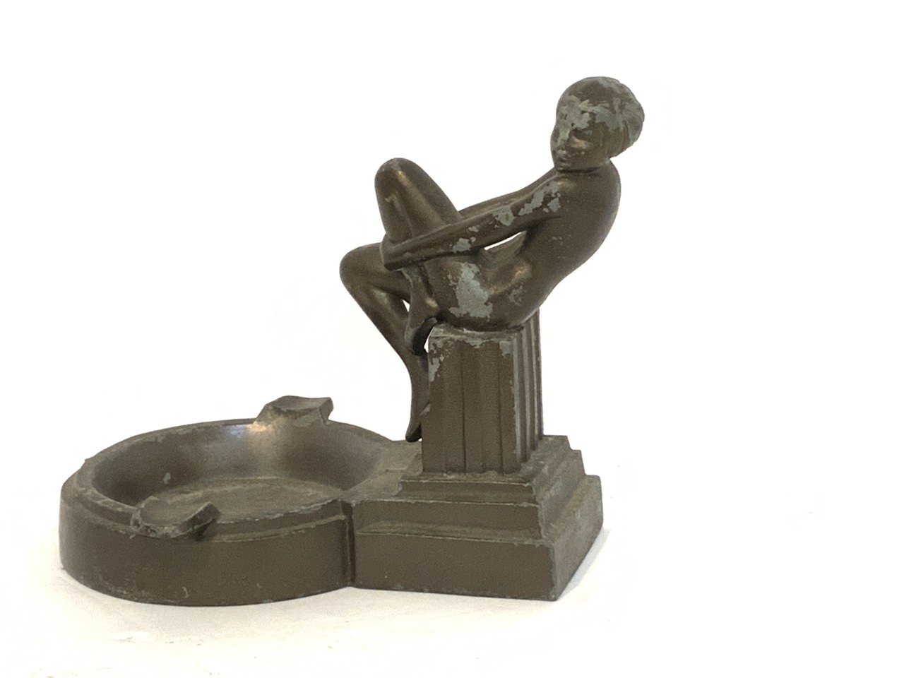 Art Deco Frankart style nude ashtray. Dimensions: 7" X 7 1/2" X 6"