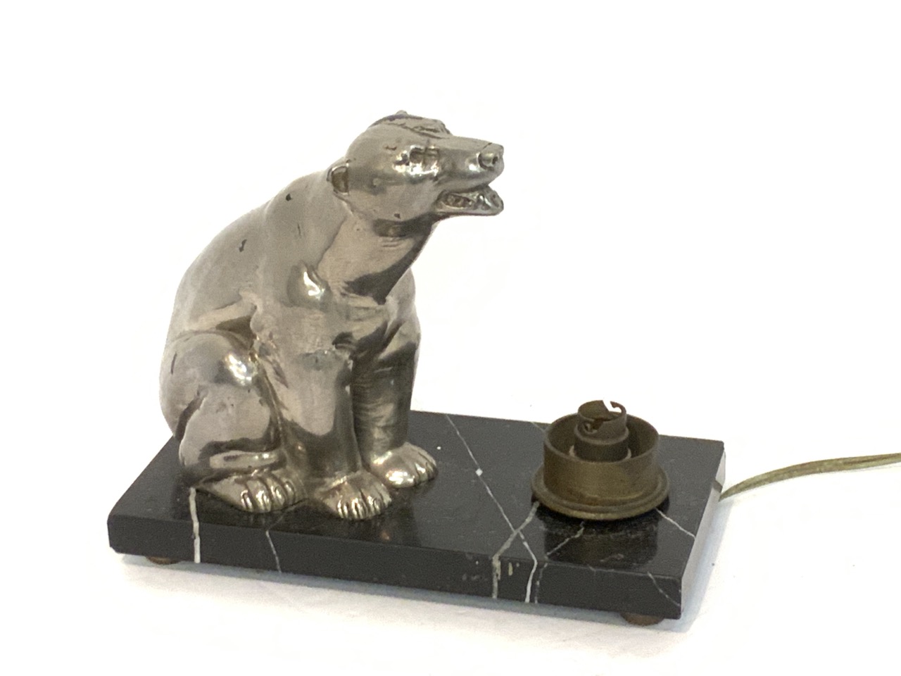 Art Deco chrome bear figural table lamp. Dimensions: 7"h X 8"w X 4"d