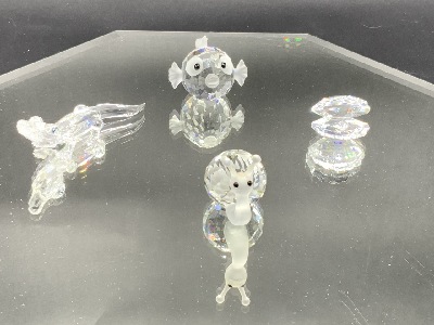 Swarovski Crystal Animals with Penguin 010027,Duck, Chimpanzee “ African Wildlife”,Frog Prince “ Beauties of the Lake”,Mini Seal 012530 Designed By Max Screck, “Ella the Elephant “ From “Little Companions”and Elephant “Silver Collection”