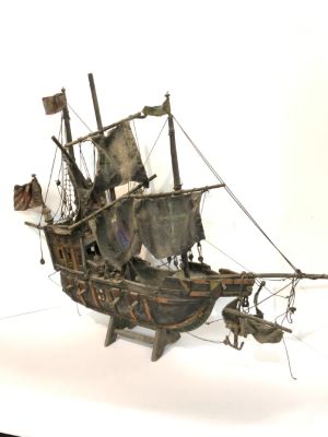 Antique Mayflower three masted ship model.