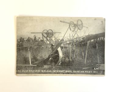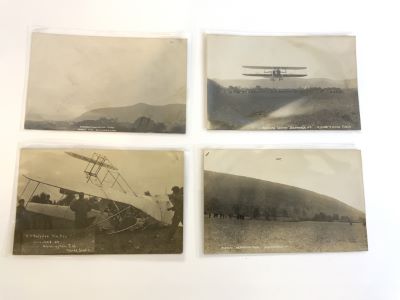 Seven (7) Original Chicago Aviation Postcards. Including the wreck of Stone's monoplane , Badgers "Red Devil" , Robison's Curtiss Hydroplane, Collision of Coffy's Biplane and Hoisant Monoplane, Stone's Queen Monoplane Wrecked In Lake Michigan, W.M.R. Badger In Baldwin Biplane, Killed August 15 1911. All Original.